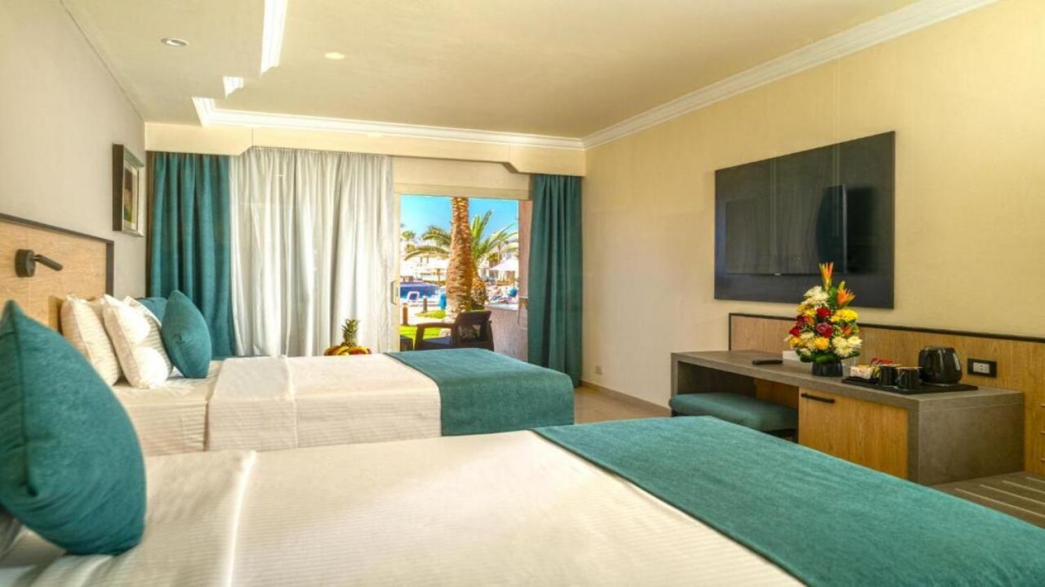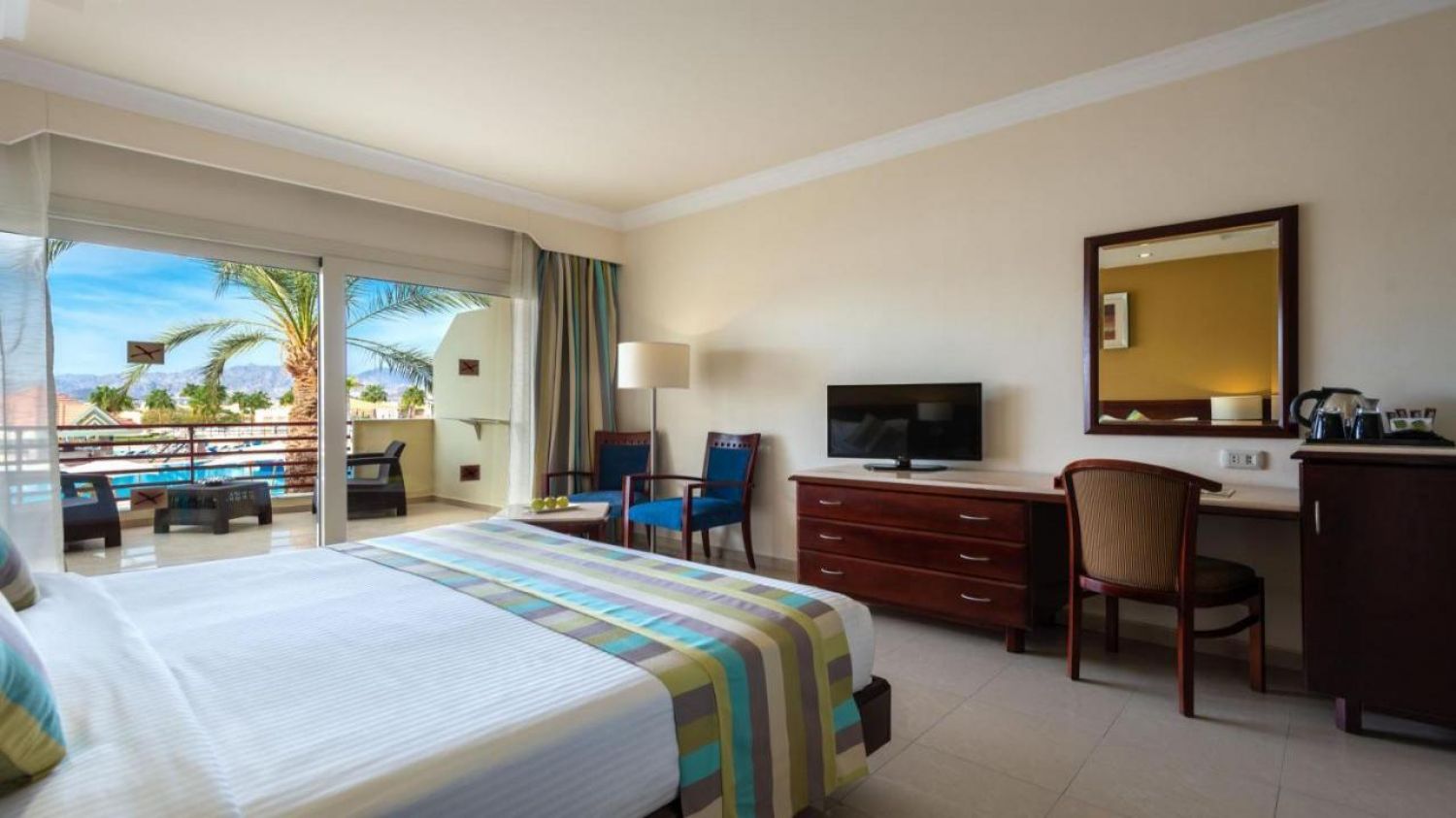 Всички стаи са климатизирани и модерно обзаведени. Разполагат със самостоятелен балкон или тераса с изглед към басейн или градина. Безплатно зареждане на минибар в стаята се предоставя веднъж на по време на престоя.
