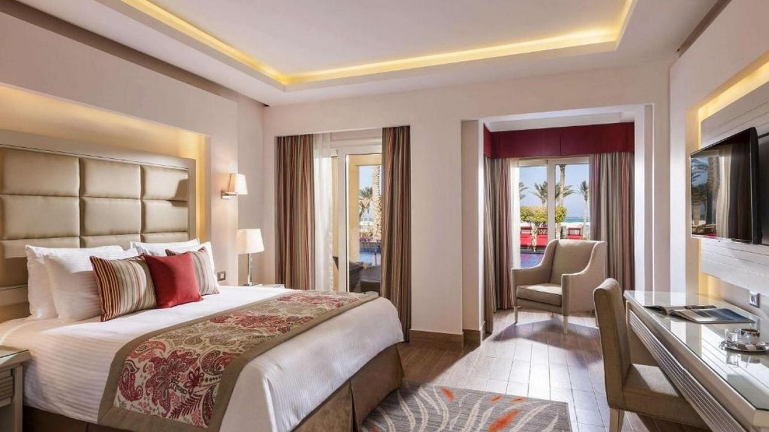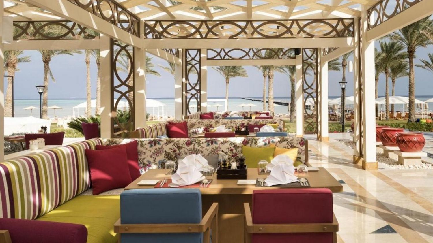 Този луксозен 5-звезден хотелски комплекс в Шарм ел-Шейх е разположен сред палмови дървета на брега на морето. Международното летище Шарм Ел Шейх е на 9 км. Гостите могат да пазаруват в търговския център Naa’ma Bay, който е на 18 км. При заявка се осигурява летищен трансфер.