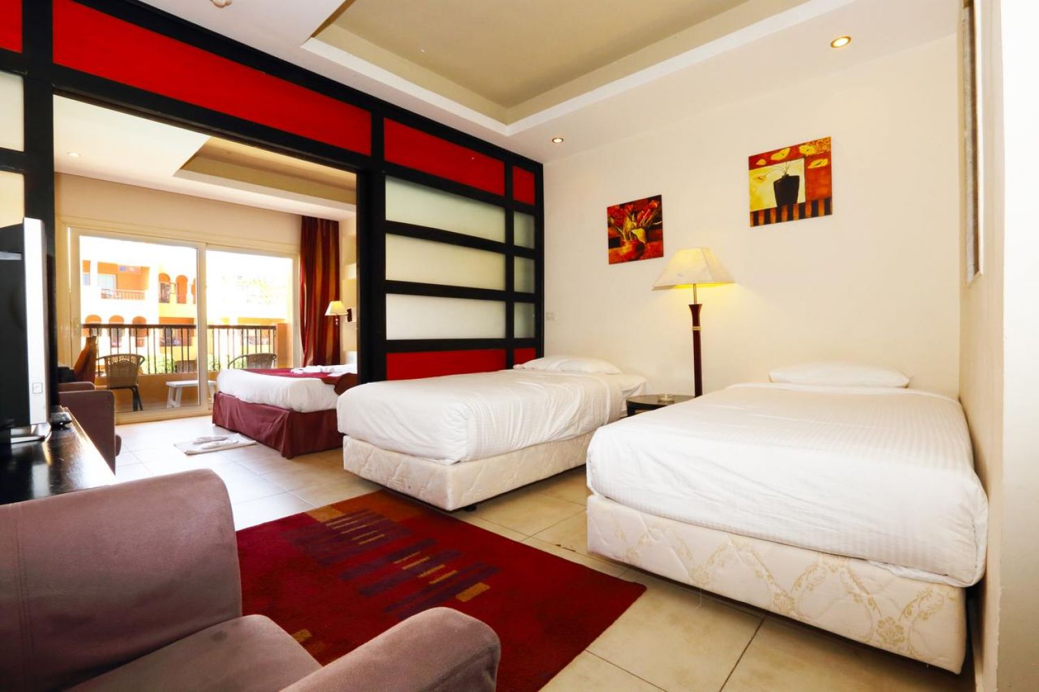 Собствен, пясъчен, коралов риф, кей с дължина 75 м. Чадъри и шезлонги на плажа и при басейна - безплатно. Плажни кърпи - безплатно.