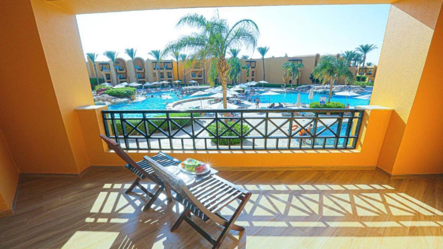 Stella Beach Resort се намира в красивия район Макади Бей, южно от Хургада. Разположен е директно на първа линия до частен пясъчен плаж с плитки води и коралови рифове – перфектен за плуване и шнорхелинг. Международното летище на Хургада е на около 35 км, а центърът на града – на около 40 км. Районът е спокоен, с луксозни курорти и отлични условия за почивка край морето.