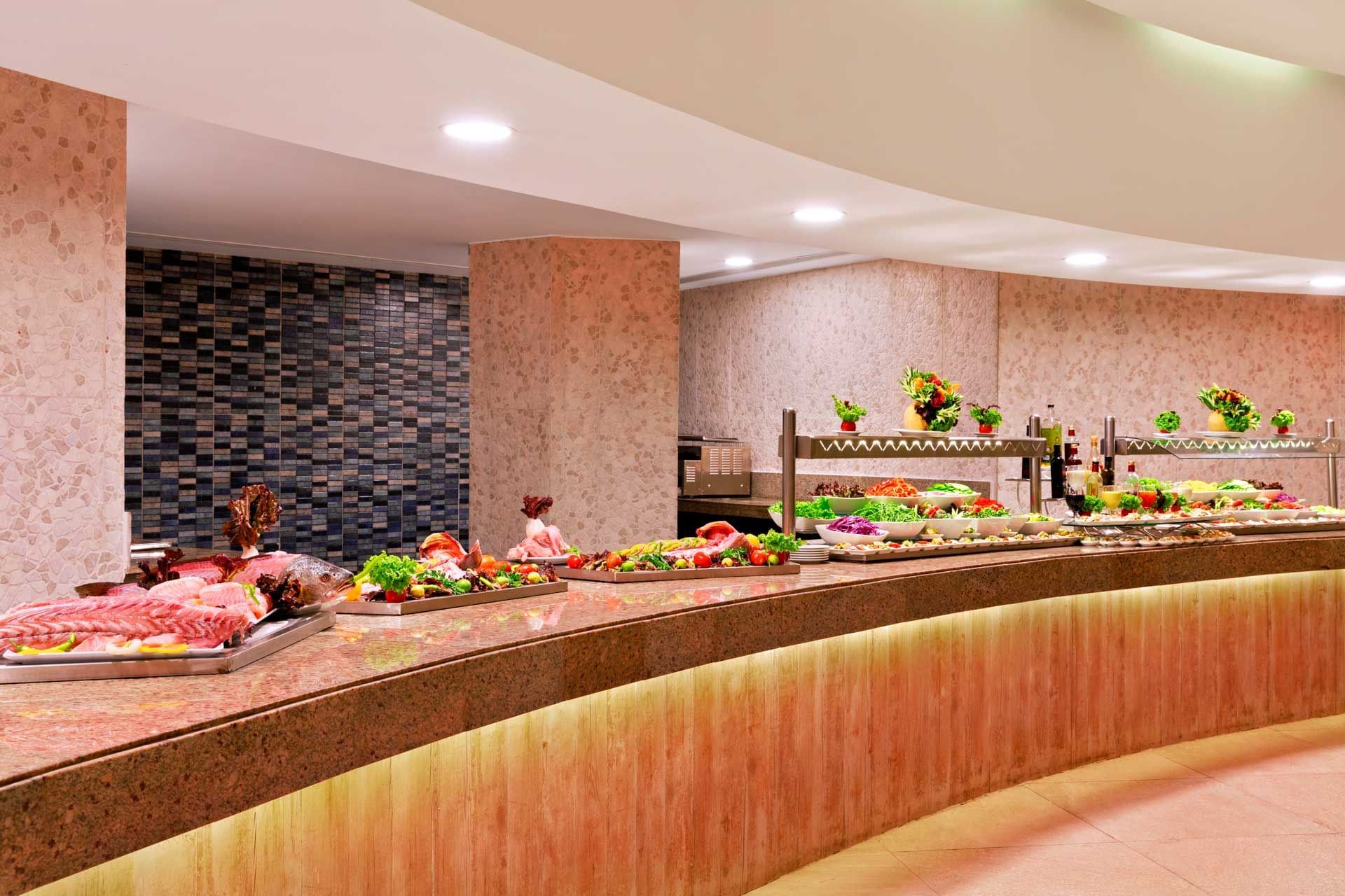 Основен ресторант, 5 а-ла-карт ресторанта (с предварителна резервация, съгласно концепцията на хотела), 10 бара, 15 открити басейна (4 отопялеми през зимата), аквапарк с 27 пързалки, СПА център, магазини.