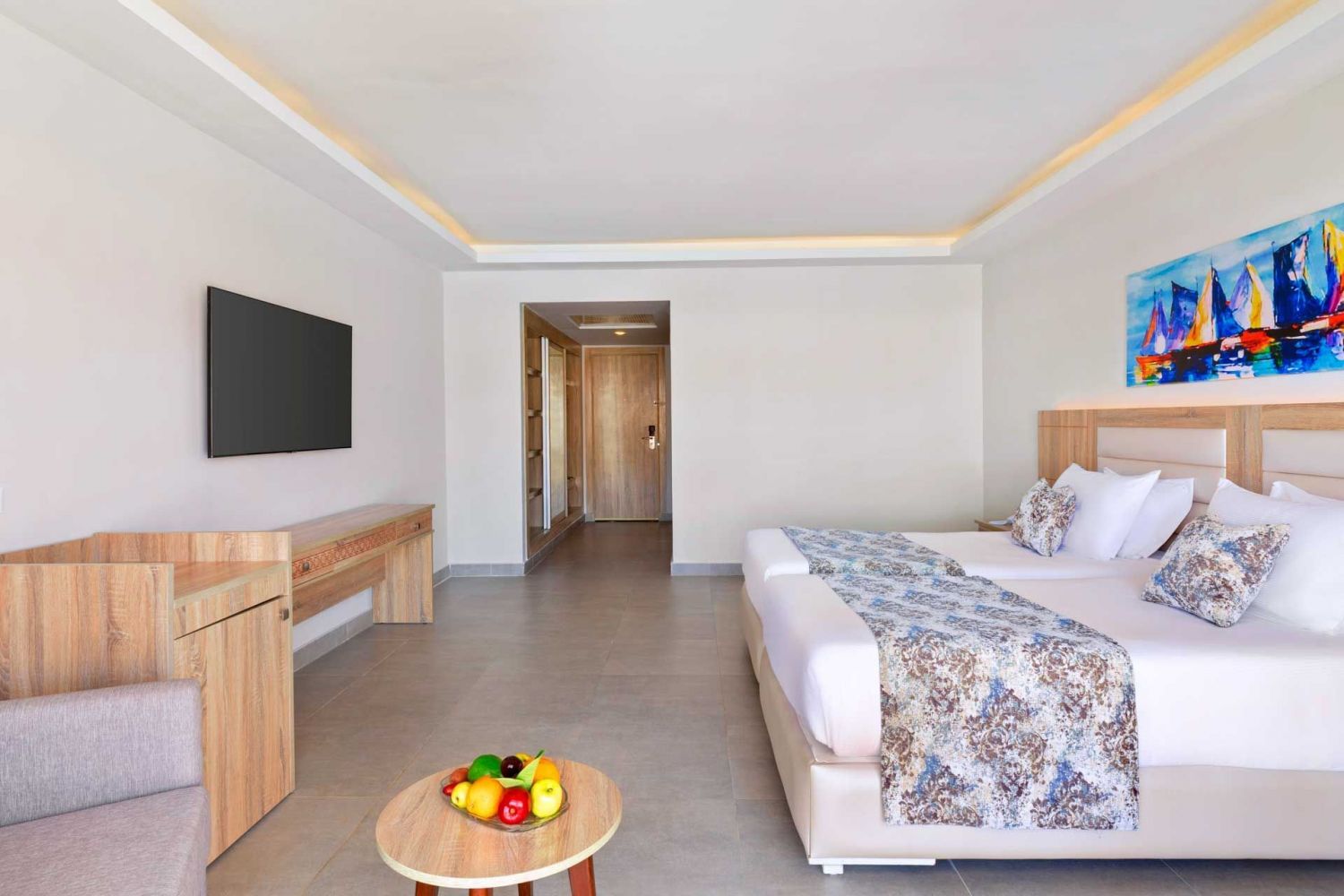 Всички стаи са оборудвани с климатик, телевизор, телефон, баня с душ, сешоар, сет за чай/кафе, минибар, сейф, балкон/тераса. Почистване на стаите и смяна на кърпите – всеки ден, смяна на спалното бельо – 2 пъти в седмицата.
