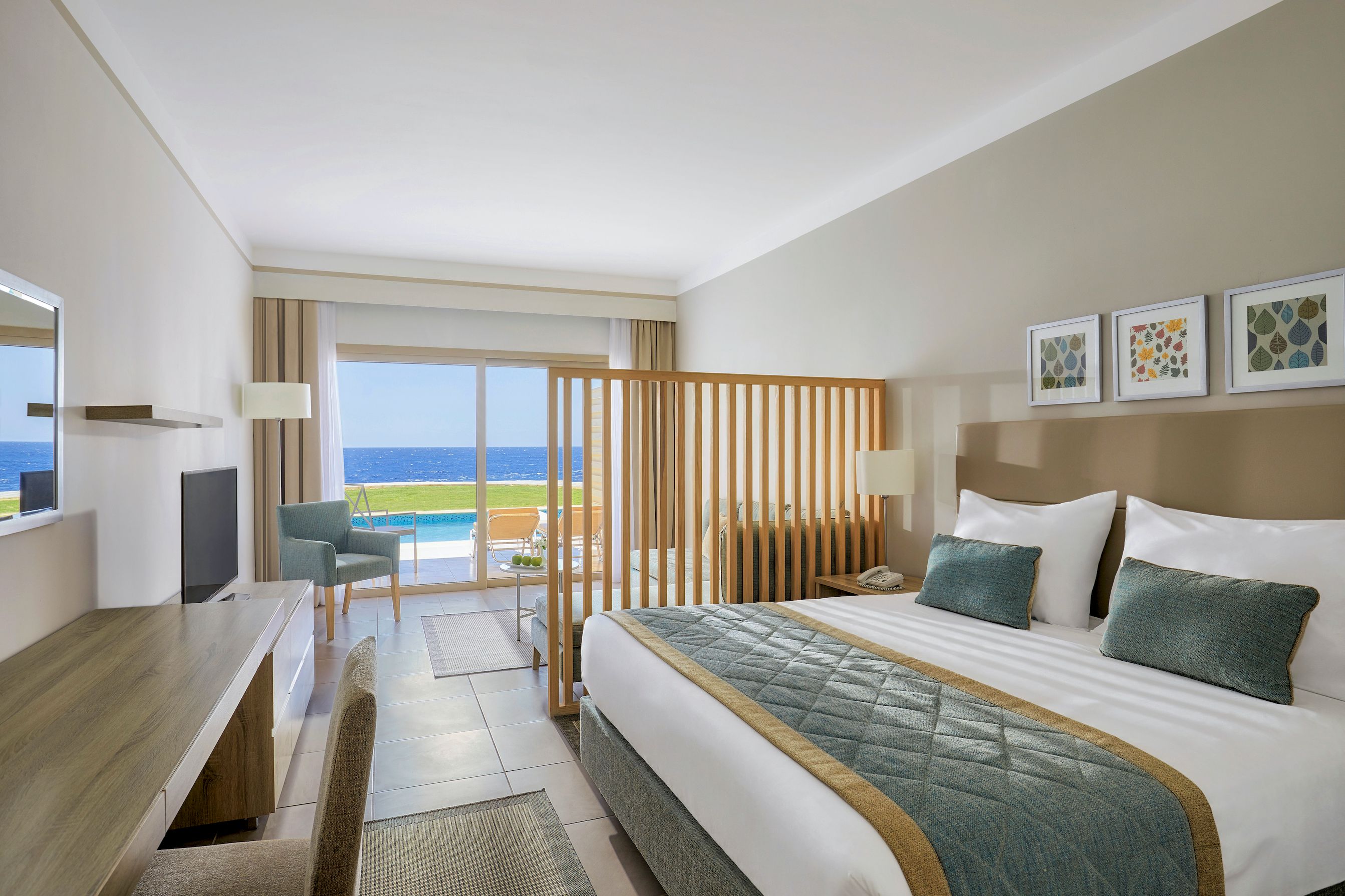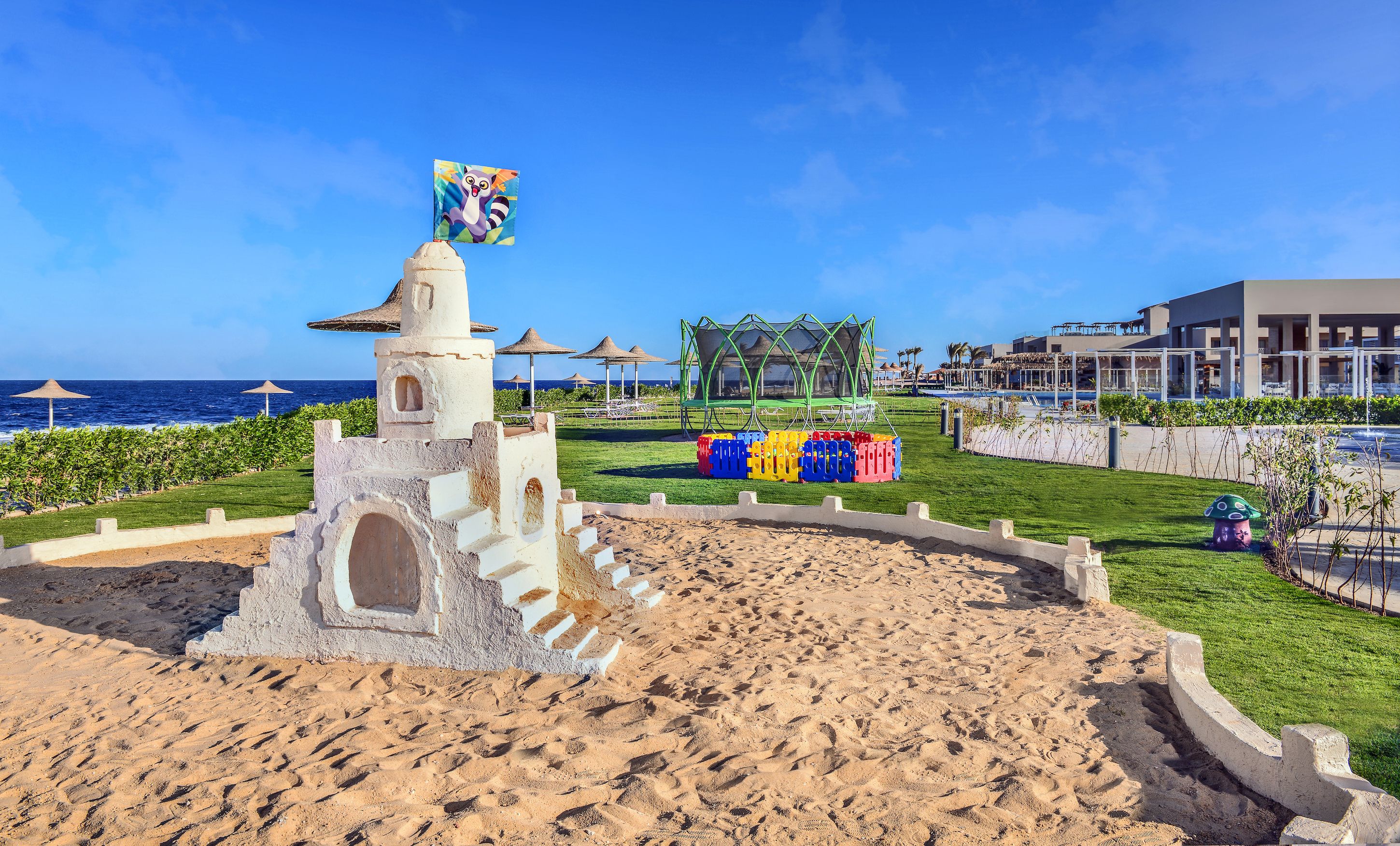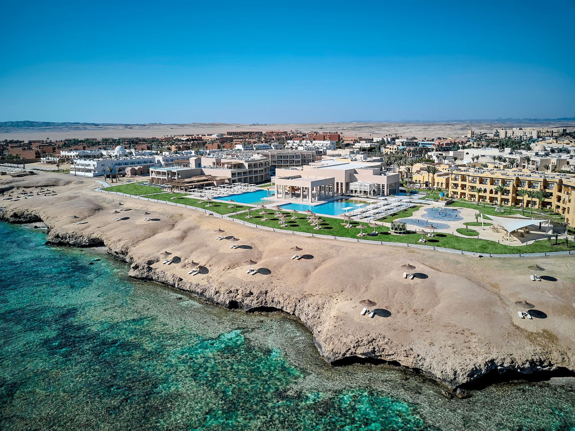Собствен, пясъчен и коралов плаж. Чадъри, шезлонги и плажни кърпи на плажа и при басейна - безплатно.