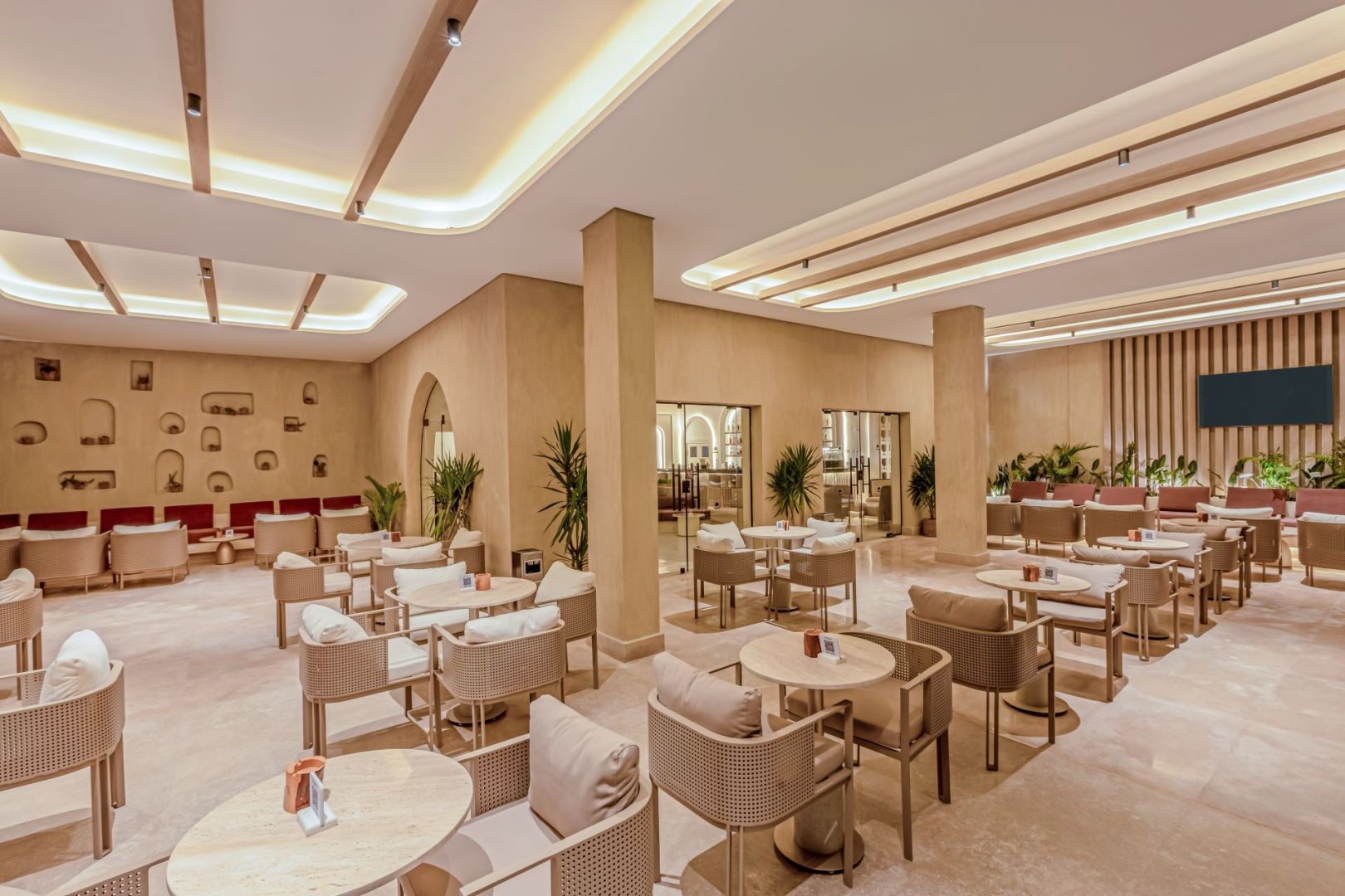Основен ресторант, 2 а-ла-карт ресторанта (италиански, азиатски– срещу заплащане/с предварителна резервация, съгласно концепцията на хотела), 8 бара, 5 открити басейнa, СПА център, конферентна зала, паркинг.