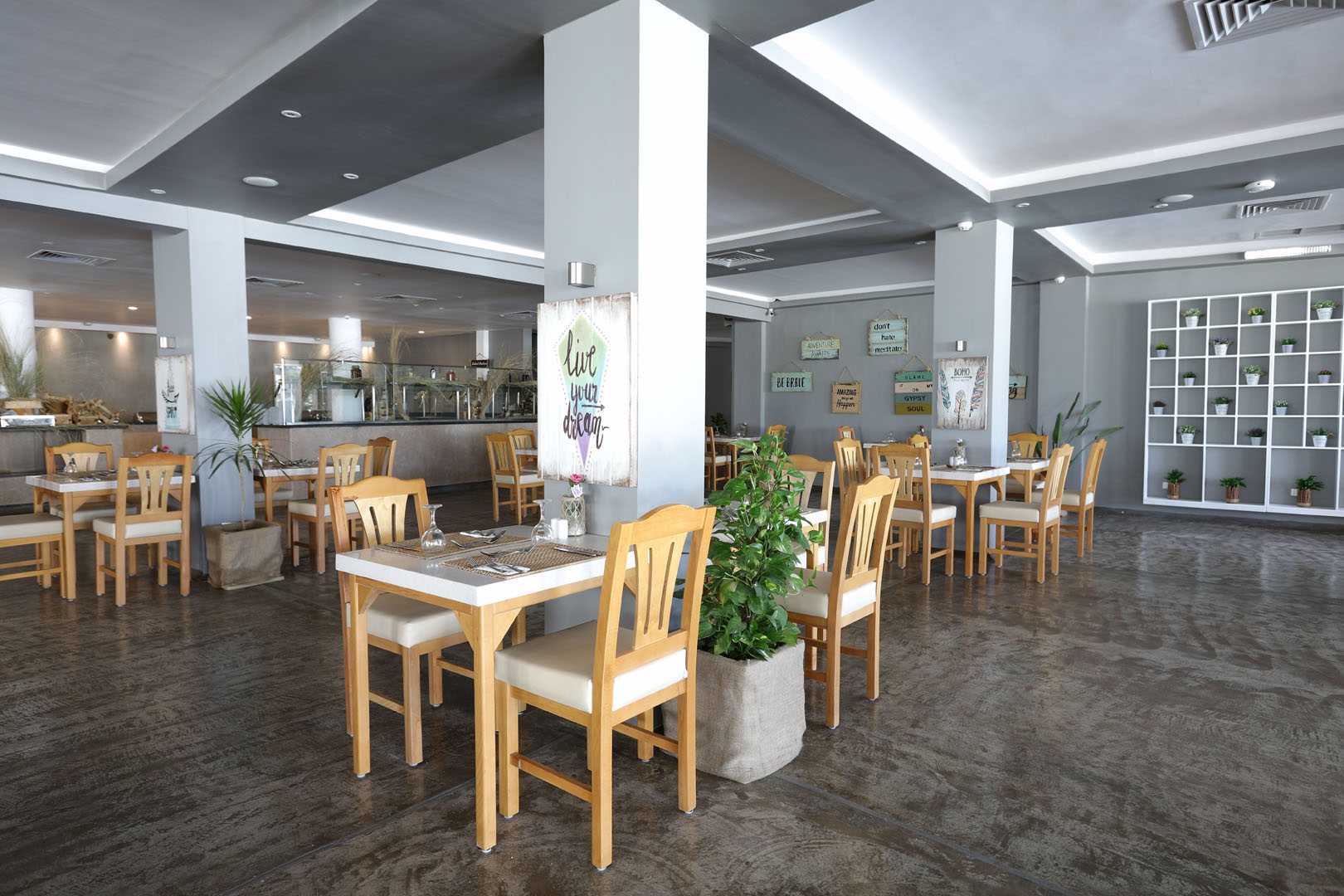 Основен ресторант, 7 а-ла-карт ресторанта (египетски, азиатски, гръцки, бургер ресторант, нудел рестoрaнт, пицария, рибен- с предварителна резервация, съгласно концепцията на хотела), 9 бара, 3 открити басейна (1 отопляем през зимата), аква парк с 2 пързалки, амфитеатър, СПА център, магазини.