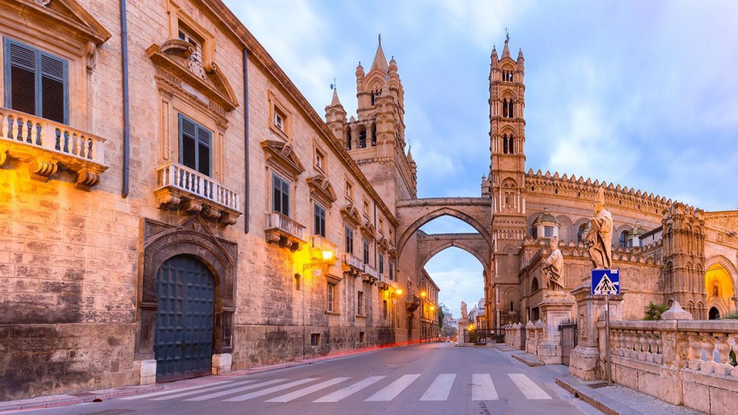 В архитектурата на Палермо се смесват всички стилове, отразяващи заплетената и богата история на града. Това е единственото място в света, където са оставили белег всички основни Средиземноморски цивилизации – от финикийците, римляните, арабите и норманите, испанците и французите. Сърцето на Палермо е белязано от бароковото кръстовище „Куатро Канти”, непосредсвено до него се намира „Пиаца Претория” с „Фонтана на срама”, зад сградата на Общината е разположена църквата „Марторана”, където афрески, византийска мозайка и барок се сливат в хармоничен шедъовър. До „Марторана” се намира църквата „Свети Каталдо” – прекрасен пример за арабо-норманска архитектура.