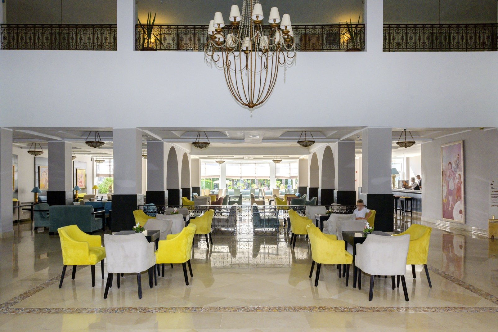Основен ресторант Thusdrus, 2 а ла карт ресторанта - един с интернационална кухня и втори на плажа, барбекю ресторант (едно безплатно посещение на престой, след предварителна резервация), лоби бар, бар басейн, мавританско кафене, 2 открити басейна, закрит басейн, вътрешен басейн с морска вода в таласо центъра, 5 водни пързалки за възрастни и 1 за деца, анимация, Wi-Fi в лобито, общи части и стаите, сувенирен магазин, обмяна на валута, паркинг.