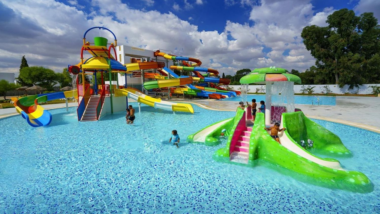 Основен ресторант, лоби бар, бар при басейна, бар при водните пързалки, бар и ресторат на плажа (срещу заплащане), мавританско кафене(срещу заплащане), СПА център, анимация, външен басейн, воден парк с 6 водни пързалки за възрастни и 2 водни пързалки за деца (10:30 – 12:30 часа, 14:30 – 17:30 часа), 24 часова рецепция, сувенирен магазин, обмяна на валута, конферентна зала.