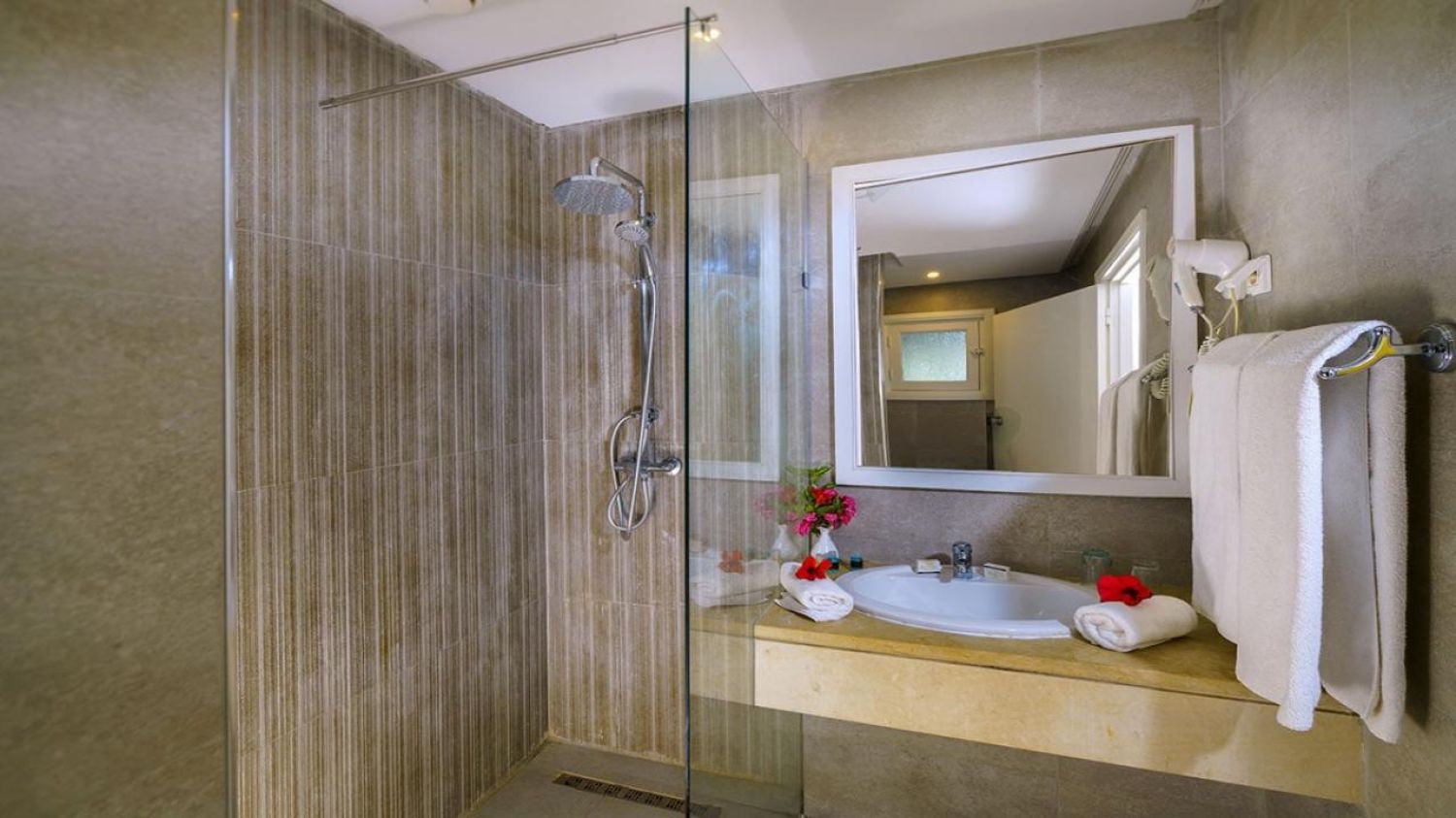 Всички стаи са оборудвани с климатик, телевизор, сейф (платен), минибар (платен), сешоар, собствена баня с вана или душ, балкон или тераса. За настаняване на двама възрастни и две деца се предвижда стая с двуетажно легло за децата. Стаите се почистват всеки ден.