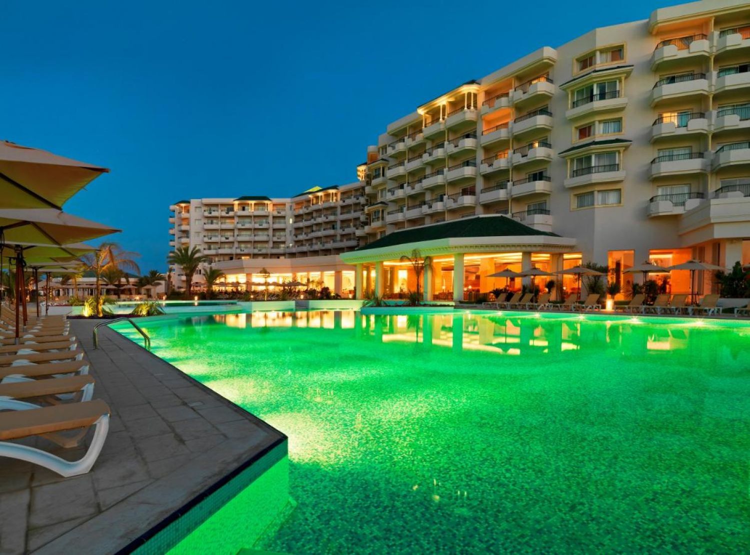 Основен ресторант, 1 а-ла-карт ресторант (срещу заплащане/с предварителна резервация, съгласно концепцията на хотела), 3 бара, мавританско кафене, 1 открит и 2 закрити басейна, Таласо център, конферентна зала, магазини, паркинг, обменно бюро.