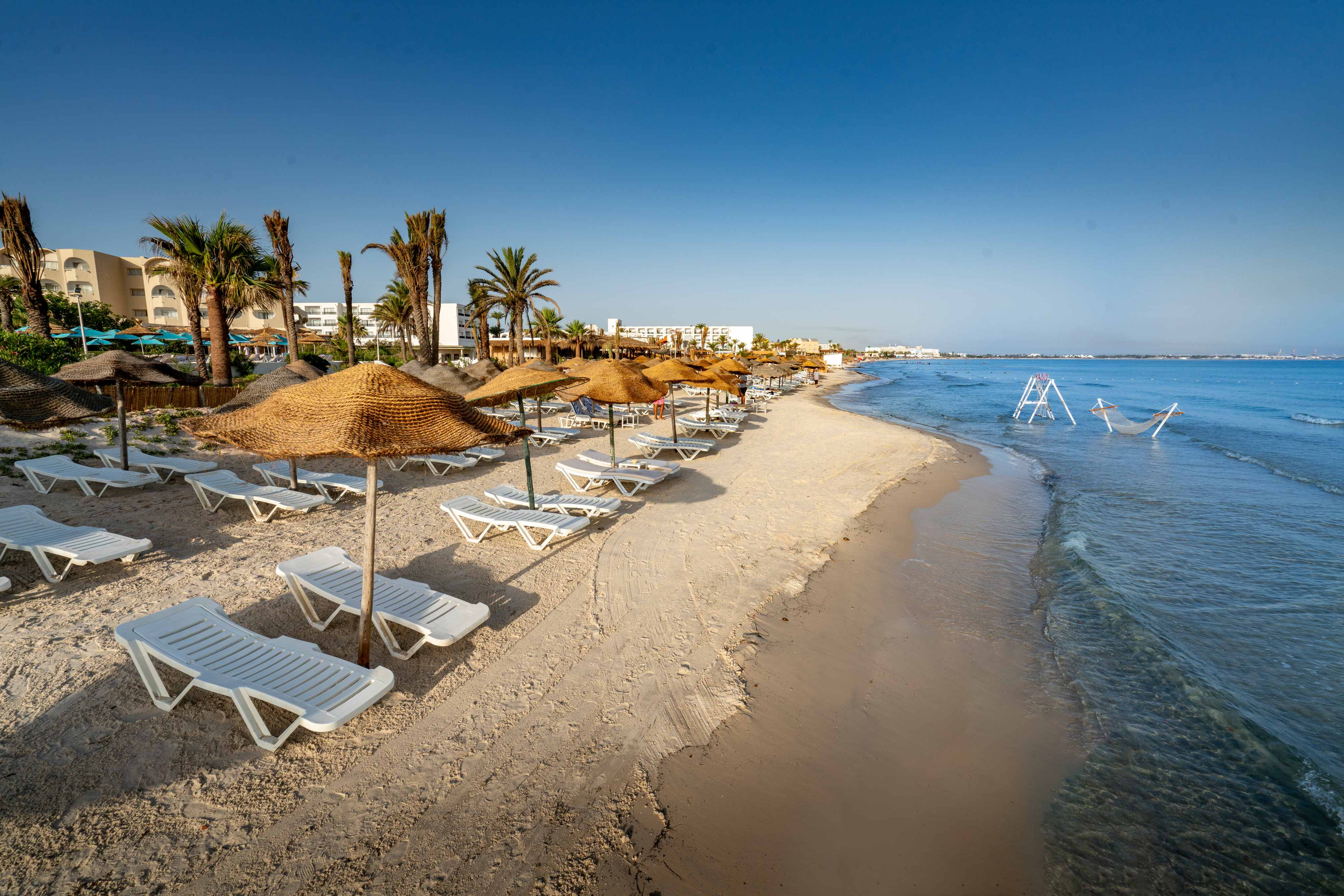 Собствен, пясъчен плаж, на първа линия. Чадъри, шезлонги и матраци на плажа и при басейна - безплатно. Плажни хавлии - безплатно, срещу депозит.