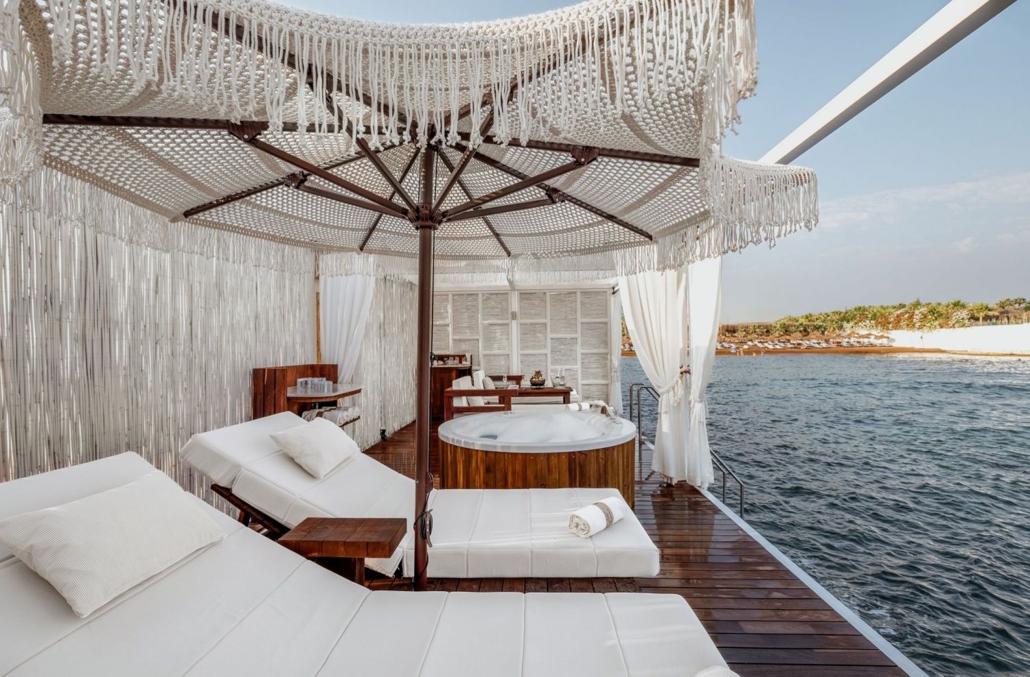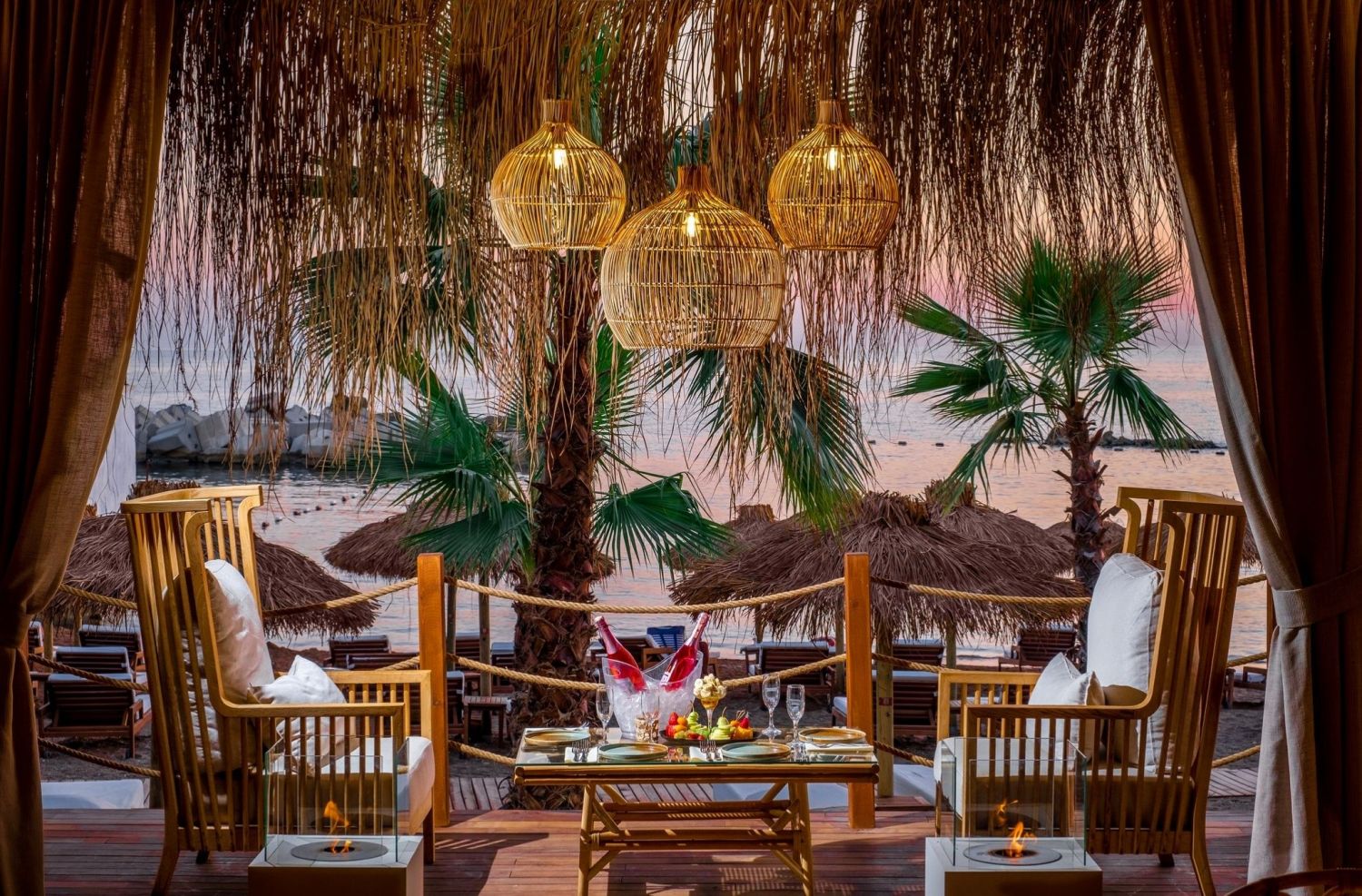 1 основен ресторант, а-ла-карт ресторант BISTRO TERRAZZA (24/7, интернационална кухня, без доплащане), ресторант THE WHITE LOUNGE (интернационална кухня, с предварителна резервация), сладкарница, 3 бара, 2 открити и 1 закрит басейн, 4 водни пързалки, СПА център, фитнес, конферентна зала.