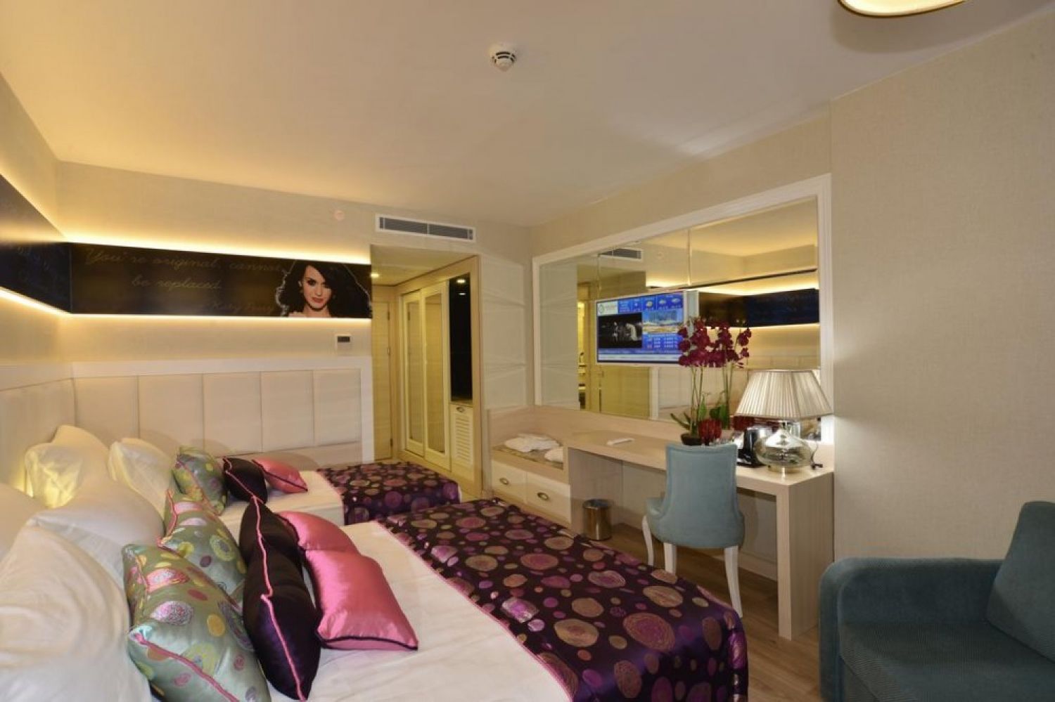 Хотелът разполага с общо 330 стаи, разположени в една 7-етажна основна сграда, от които 265 Deluxe room (с изглед суша или море - 30м2), 60 Family room (с изглед суша или море, 2 спални, 1 баня - 50 м2), 5 Deluxe fantasy room terrace with jacuzzi (1 спалня, джакузи на терасата - 58 м2). Всички стаи са оборудвани с климатик, телевизор, телефон, баня с душ, сешоар, сет за кафе/чай, минибар (безалкохолни напитки – безплатен, при пристигане), сейф (безплатен). Почистване на стаите и смяна на кърпите - всеки ден, смяна на спалното бельо - пъти в седмицата.