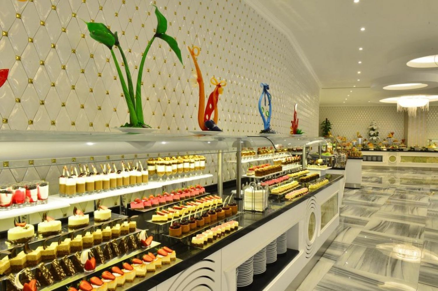 Основен ресторант, 2 а-ла-карт ресторанта (турски, италиански - с предварителна резервация), сладкарница, 5 бара (1 работещ 24 ч.), дискотека, открит и закрит басейн (отопляем през зимния сезон), 4 водни пързалки, СПА център, магазини, конферентна зала. ЗА ДЕЦАТА: Детско меню, открит и закрит детски басейн, детска площадка, мини клуб (4-12г.), детска анимация. БЕЗПЛАТНИ УСЛУГИ: Сауна, турска баня, парна баня, зона за релакс, аеробика, водна гимнастика, уроци по танци, тенис на маса, дартс, боча, анимация, жива музика, Wi-Fi (в Лоби). ПЛАТЕНИ УСЛУГИ: Масаж, пилинг, фризьор, химическо чистене, лекар, детегледачка, водни спортове, рент - а кар. ПЛАЖ: Собствен, пясъчно - чакълест. Чадъри, шезлонги и матраци на плажа и при басейна - безплатно. Плажни кърпи – срещу депозит.
