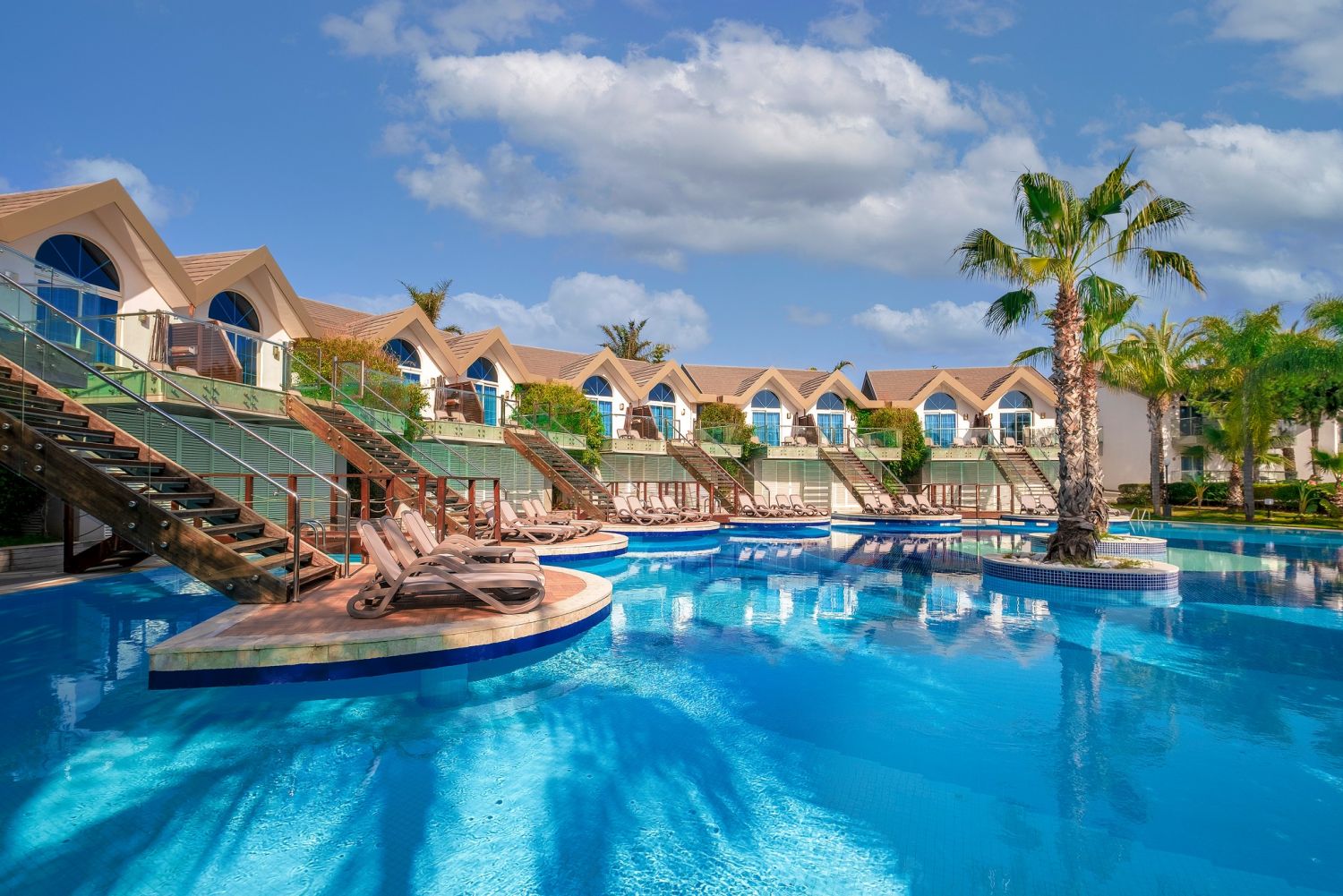 3 основни ресторанта (Villa ресторант - само за гостите, настанени в типове помещения: Villa, Chalet и Swim Up), 5 а-ла-карт ресторанта (турски, италиански, мексикански, азиатски, рибен – срещу заплащане, с предварителна резервация), 6 снек бара, 2 сладкарници, 16 бара (2 от които срещу заплащане – витамин бар и бленд кафе), дискотека, 11 открити басейна, 2 закрити басейна (отопляеми в периода до 15.04 и след 15.10), 6 аквапарка с общо 36 водни пързалки за деца и възрастни, СПА център, магазини, 1 конферентна зали, паркинг.