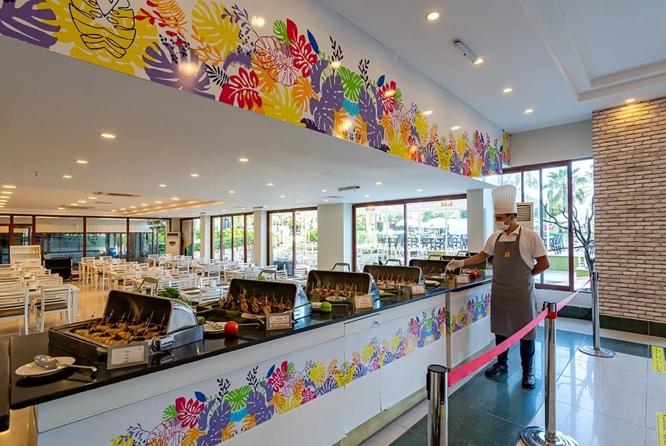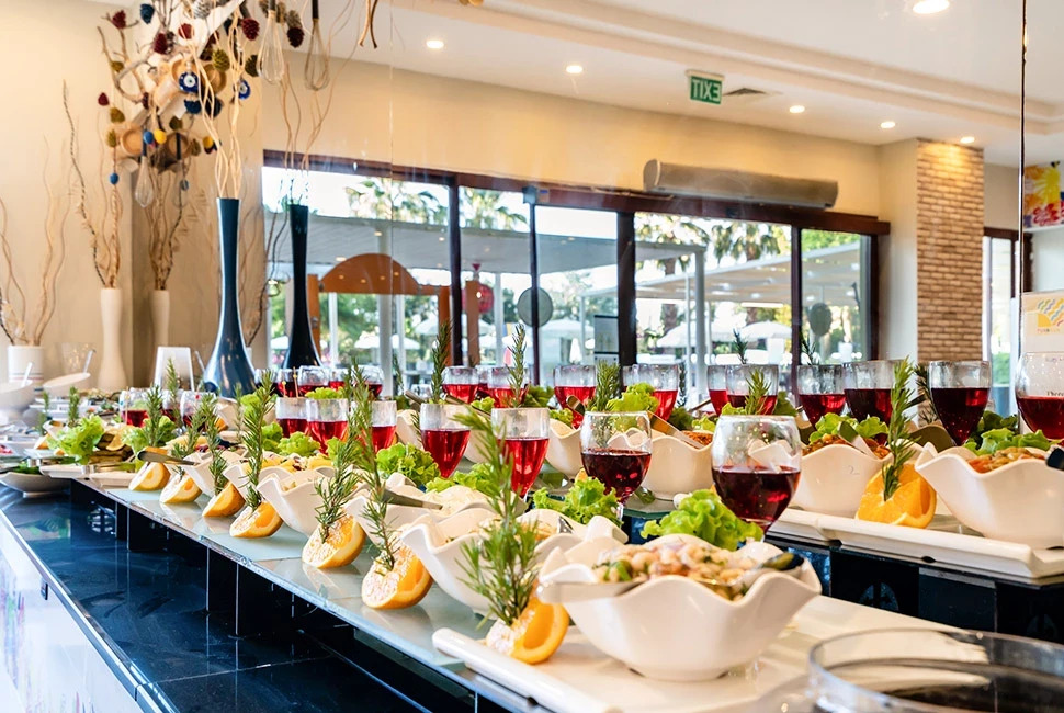 All Inclusive – закуска, обяд и вечеря на шведска маса, междинни хранения, местни алкохолни и безалкохолни напитки – без лимит (съгласно концепцията на хотела).