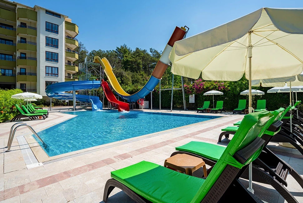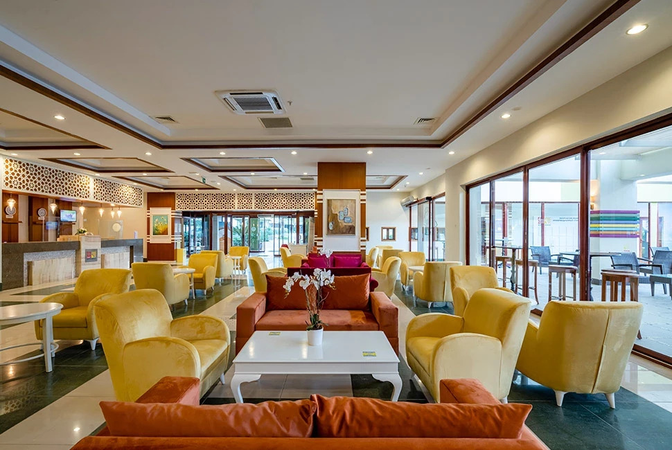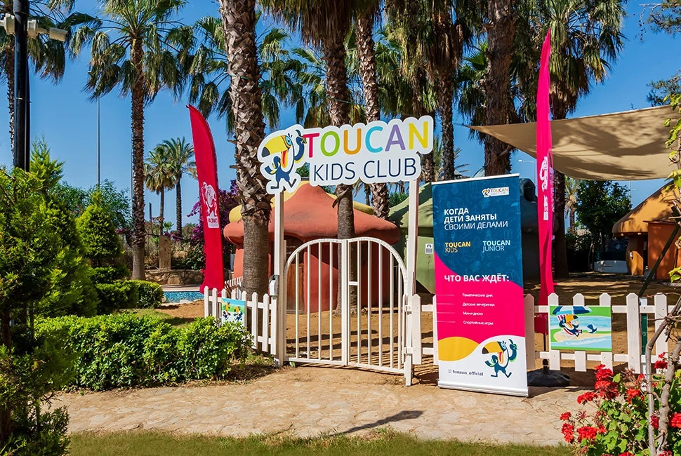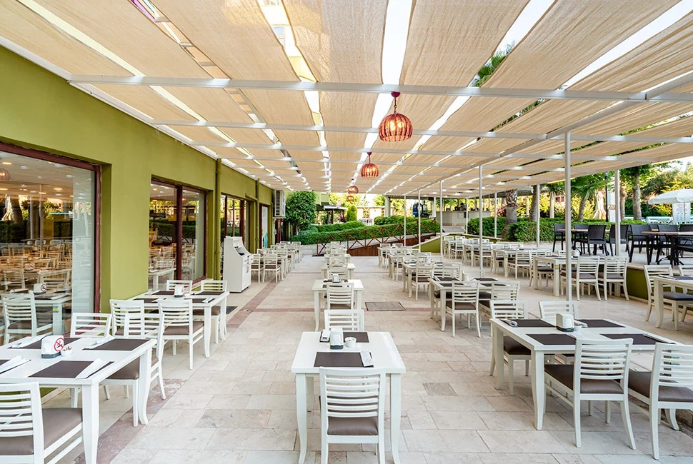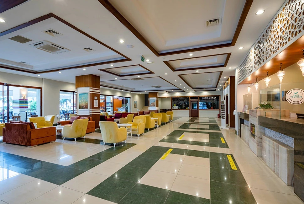 Основен ресторант, 1 а-ла-карт ресторант (Grill Restaurant – 1 безплатно посещение при минимум 7 нощувки, с предварителна резервазия), снек бар, гюзлеме корнър, тематични вечери, 7 бара, 2 открити и 1 закрит басейн, 2 водни пързалки, дискотека, СПА център, конферентна зала, Wi–Fi (в лоби). За децата: Детски открит басейн, мини клуб, детска площадка, детско столче в ресторанта, детегледачка (срещу заплащане). Безплатни услуги: Сауна, турска баня, парна баня, фитнес, тенис корт, тенис на маса, баскетбол, боча, плажен волейбол, водна гимнастика, мини футбол, дартс, лека анимация. Платени услуги: Масаж, химическо чистене, лекар, фотограф, магазини, осветление за тенис корт, водни спортове, рент-а-кар. Плаж: Собствен, на 70 м. от хотела (през път), пясъчно-чакълест. Чадъри и шезлонги на плажа и при басейна – безплатно. Плажни кърпи – срещу депозит.