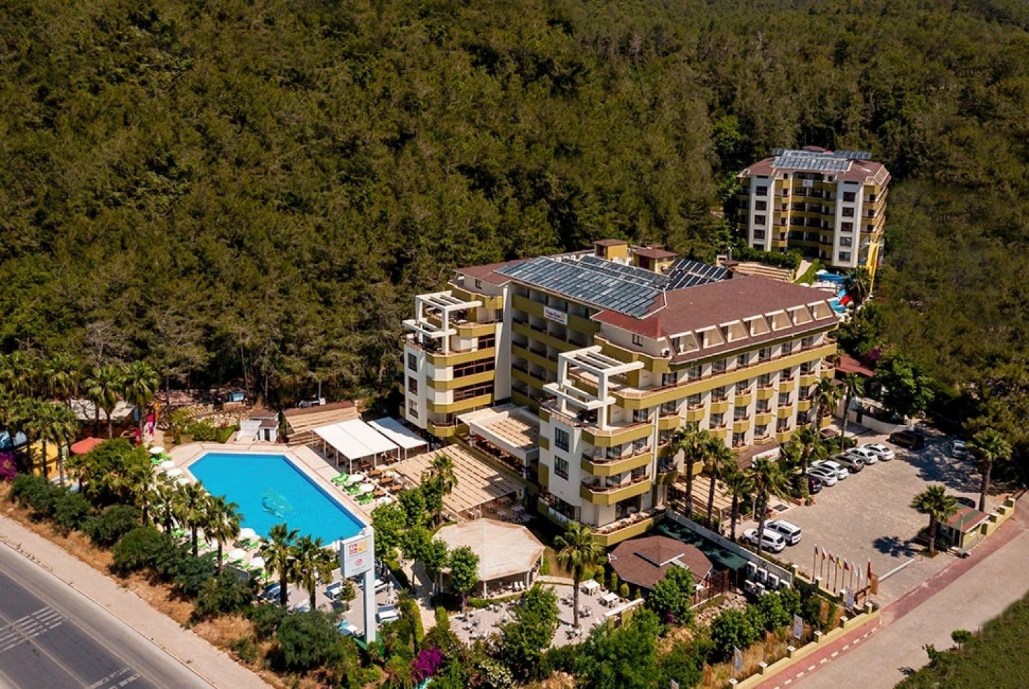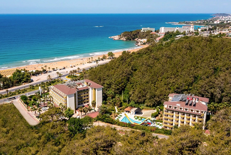 Намира се на 100 км. от летище Анталия, на 90 км. от центъра на Анталия, на 25 км. от центъра на Алания, на 3 км. от селището Авсалар, на 70 м. от брега на морето. Построен през 2005 г. с обща площ 11.000 м2, реновиран през 2019 г.