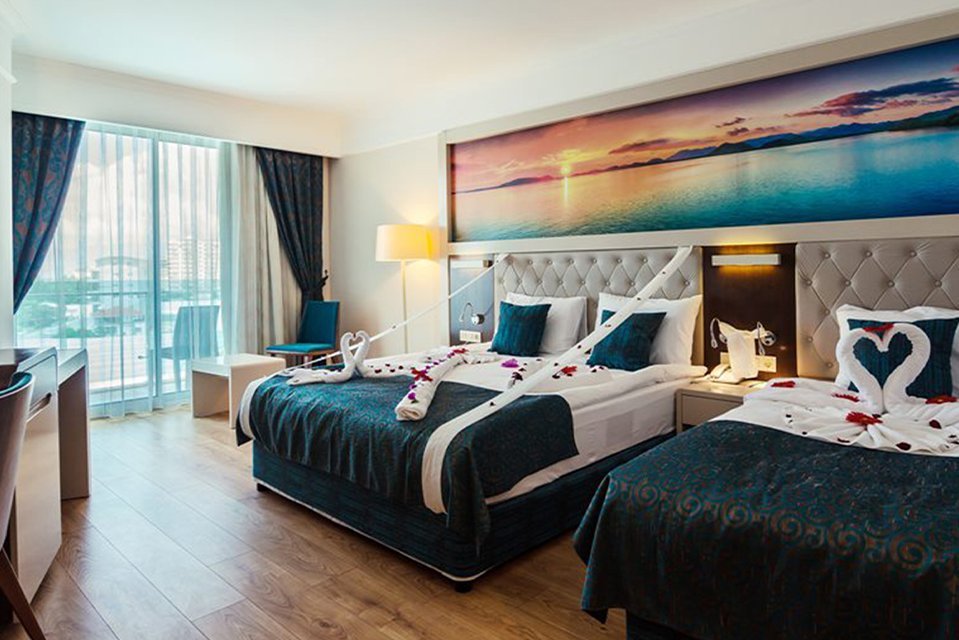 Хотелът разполага с общо 331 стаи, разположени в 6-етажна основна сграда, 301 стандартни стаи, от които Standard room land view (с изглед суша - 28 м2), Standard Room Side Sea View (частичен изглед море - 28 м2), 3 Handicapped room (пригодени за хора с ограничена подвижност, с изглед градина - 24 м2), 12 Family room (2 спални, 2 бани - 60 м2), 15 Deluxe room R.O.H (с изглед градина - 32 м2).