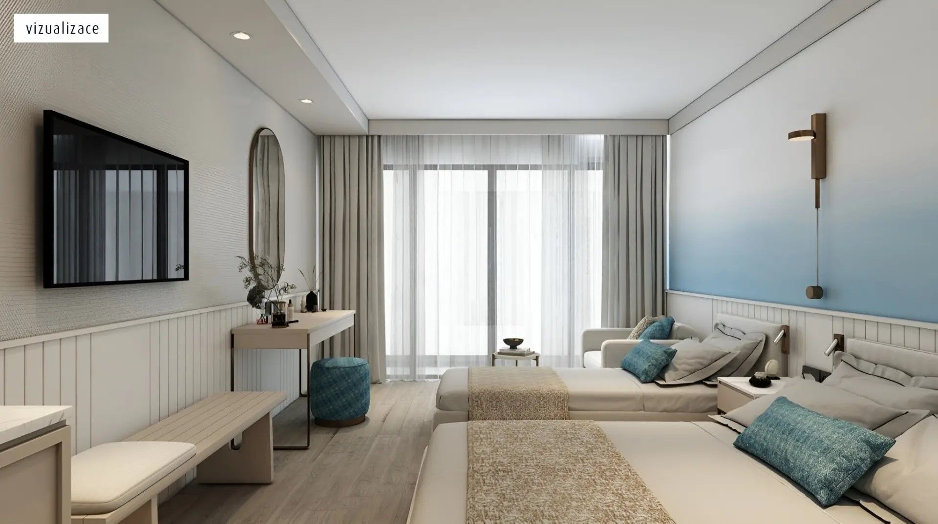 • Стандартни стаи: 175 (страничен изглед към морето, изглед към природата) 27 м2