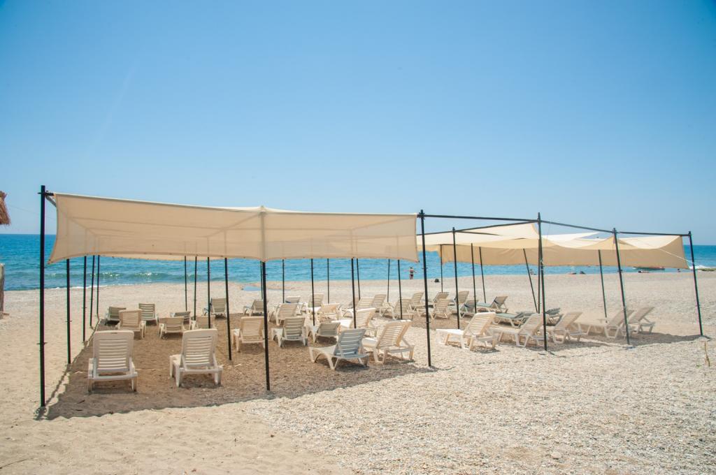 Разполага с плаж, състоящ се от камъчета и пясък, на разстояние 600 м от морето. Безалкохолните напитки са безплатни. Има два басейна за възрастни и