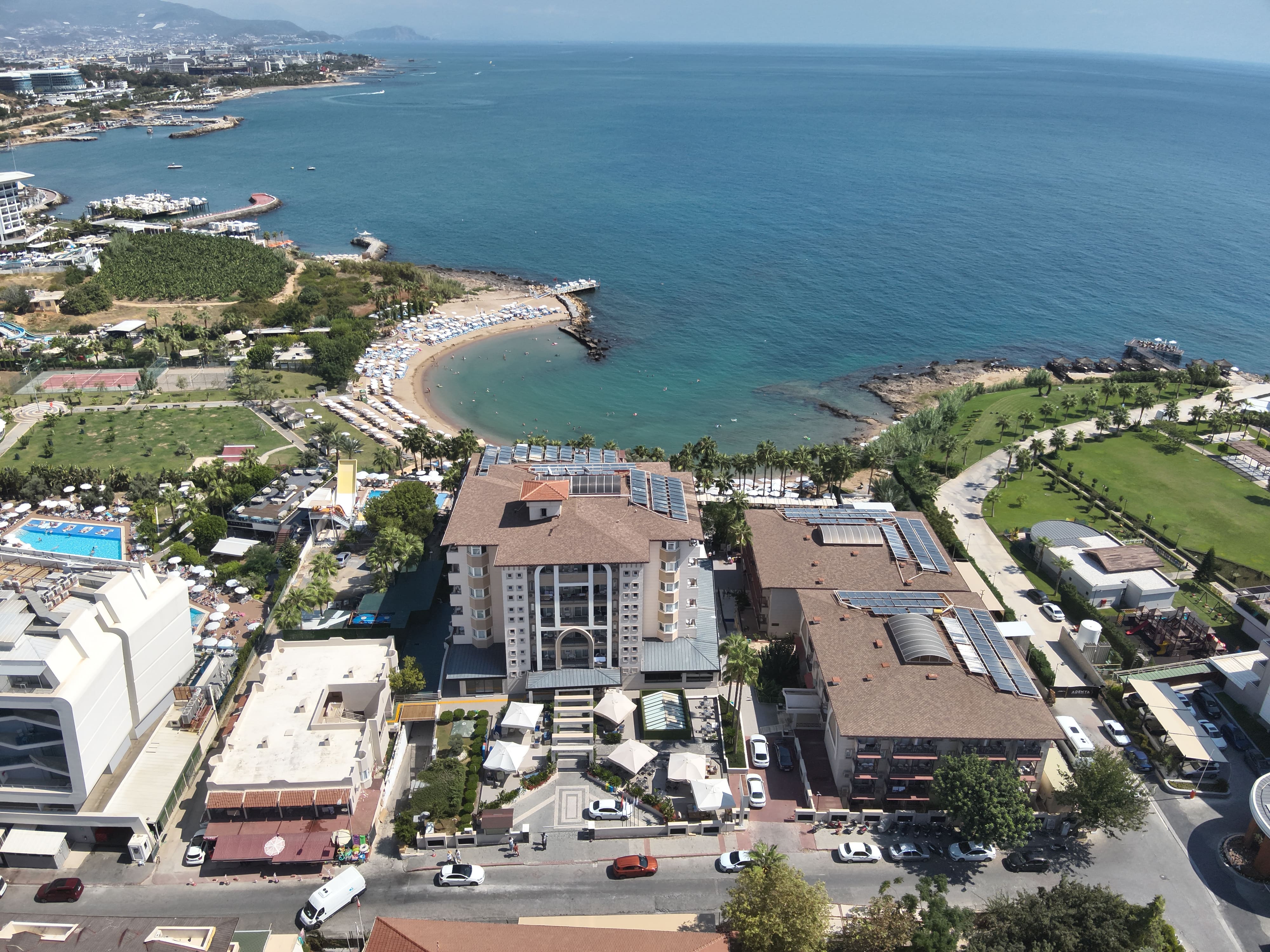 Намира се на 93 км от летище Анталия, на 120 км от центъра на Анталия, на 18 км от центъра на Алания, на брега на морето.