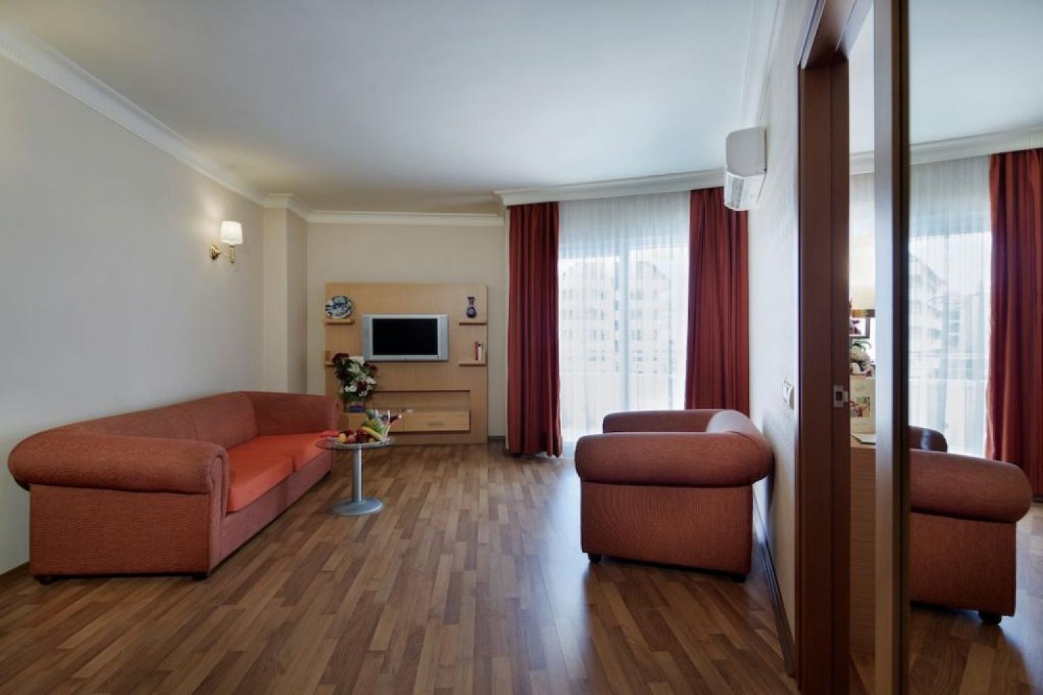 Индивидуален климатик, вана, сешоар, телевизор, мини бар - безплатен, сейф - платен, балкон, почистване на стая - ежедневно.