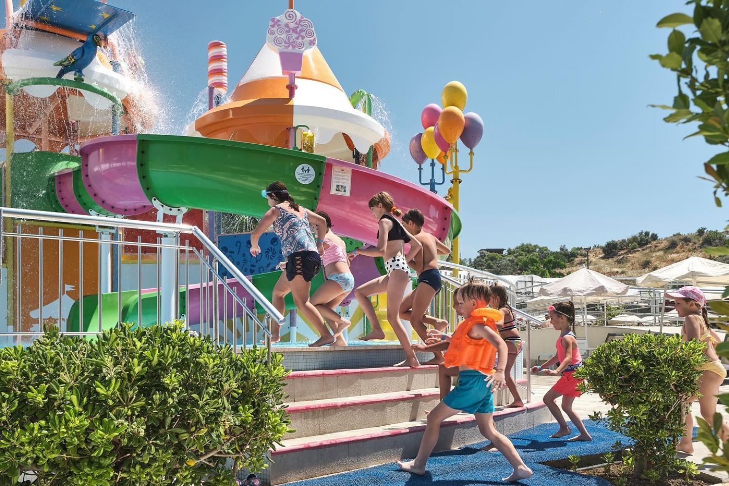 За децата: Детски бюфет, 4 открити и 1 закрит детски басейна, детска площадка, мини клуб (4-12г), тийн клуб (12-17 г), мини диско, мини кино, детска анимация, детска количка (срещу заплащане)
