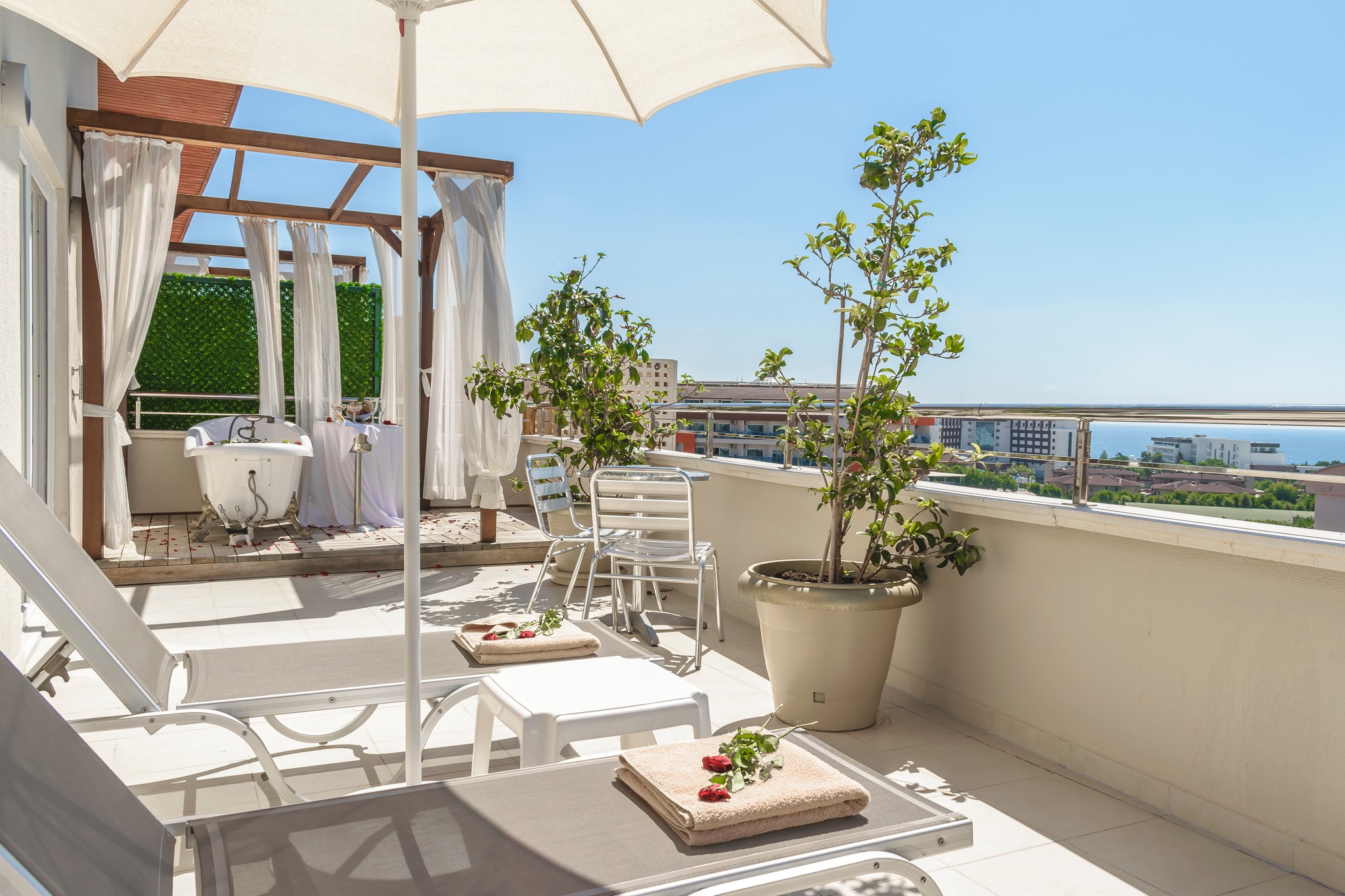 Безплатни услуги: Сауна, турска баня, парна баня, фитнес, зона за релакс, тенис корт, тенис на маса, дартс, боча, шах, табла, плажен волейбол, баскетбол, аеробика, пилатес, степ, стречинг, водна гимнастика, водно поло, жива музика, анимация, Wi-Fi (на цялата територия).