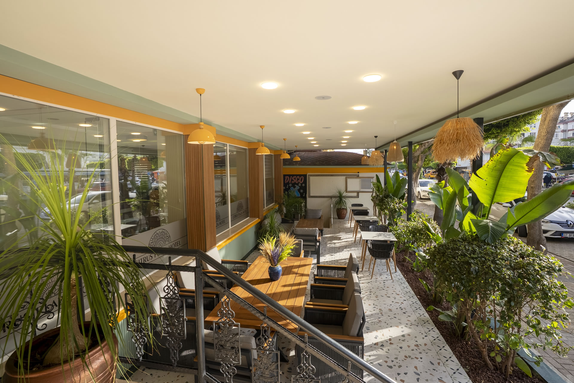 Намира се на 130 км от летище Анталия, на 140 км от центъра на Анталия, на 4 км от центъра на Алания, на 150 м от брега на морето. Построен 1998 г., частично реновиран 2025 г.