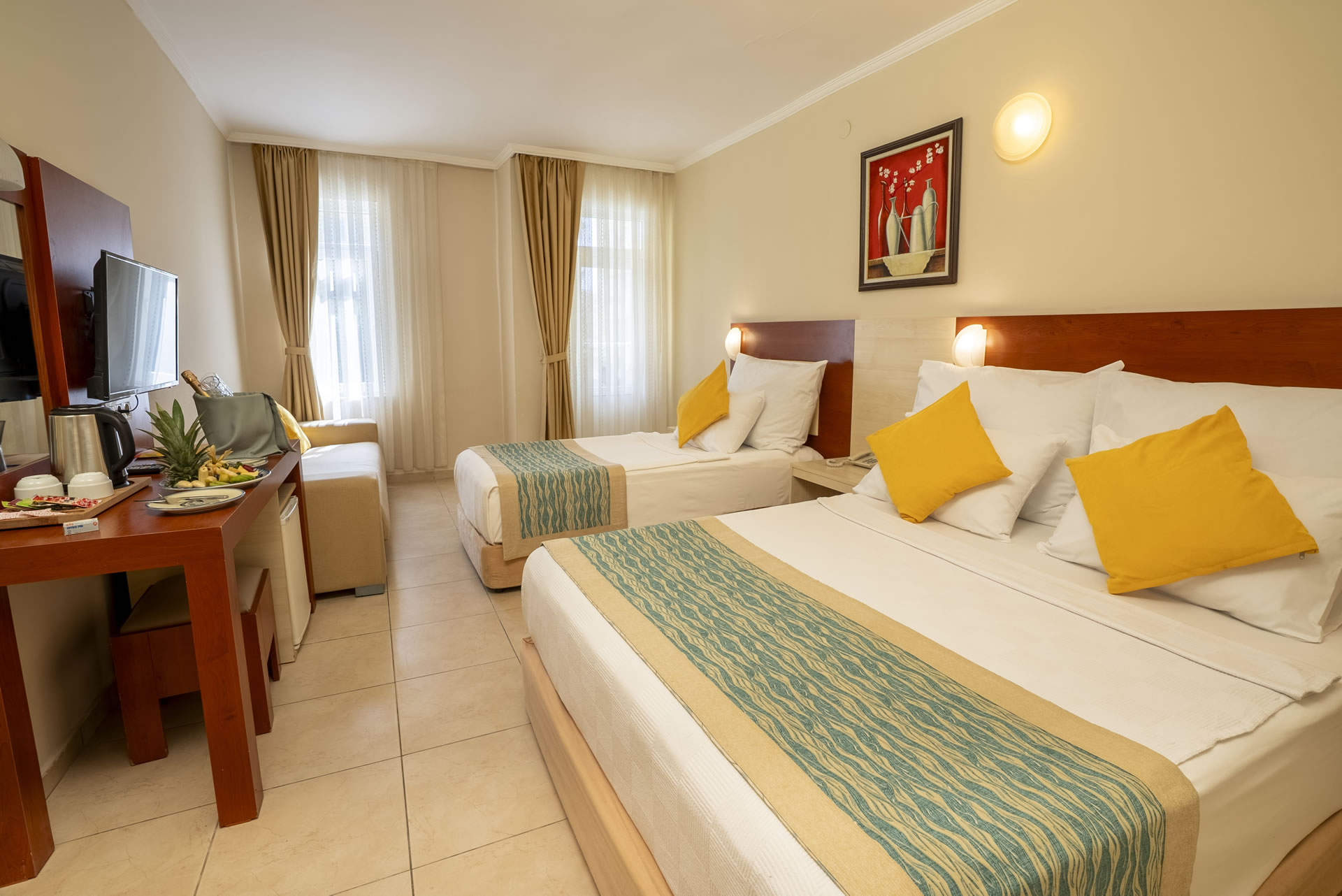 Всички стаи са оборудвани с климатик, телевизор, телефон, баня с душ, сешоар, сет за чай/кафе, минибар (безплатен), сейф (безплатен).