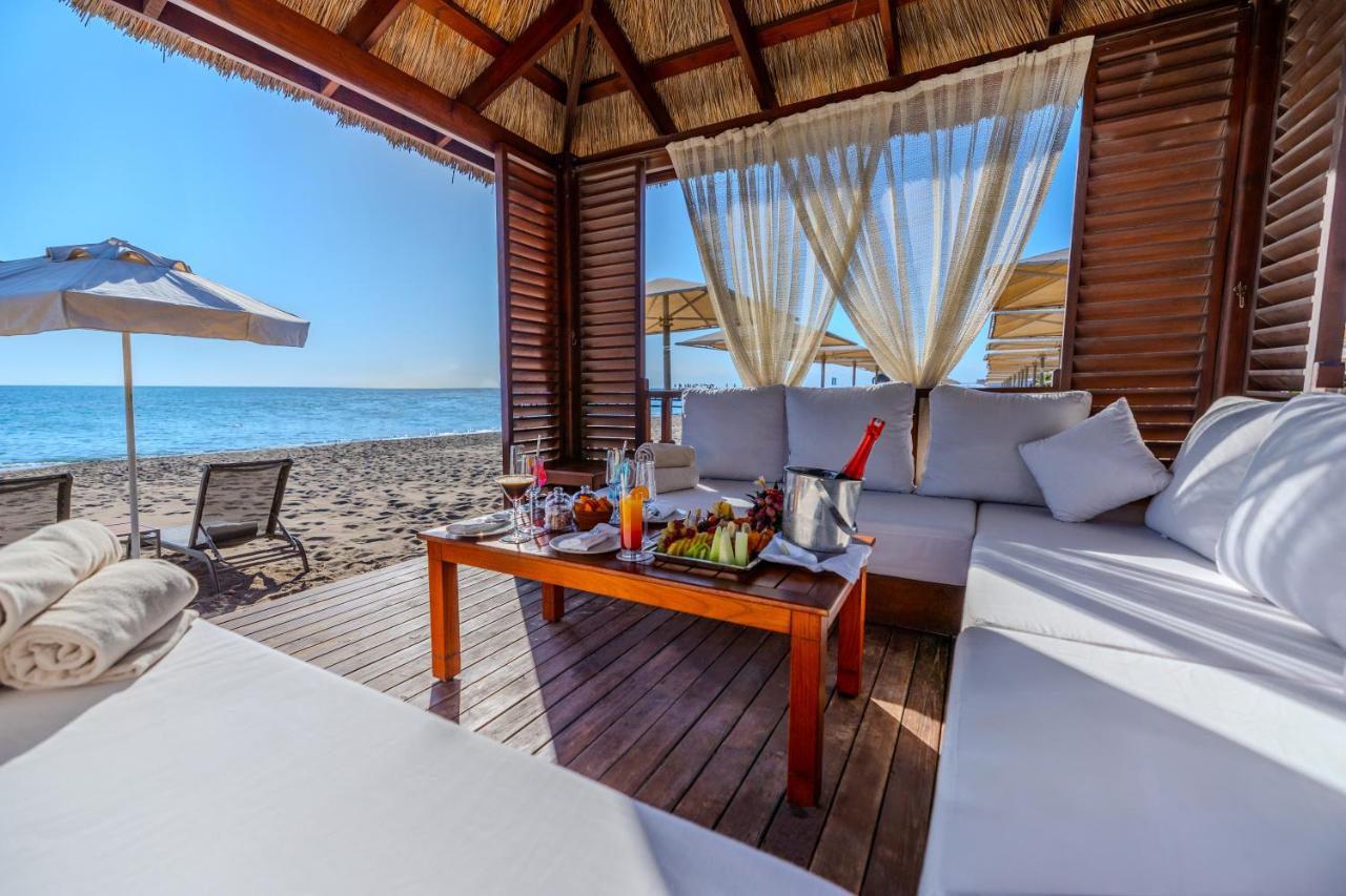 Собствен, пясъчно – чакълест, притежаващ сертификат „Син флаг“, кей. Чадъри, шезлонги и плажни кърпи на плажа и при басейна – безплатно.