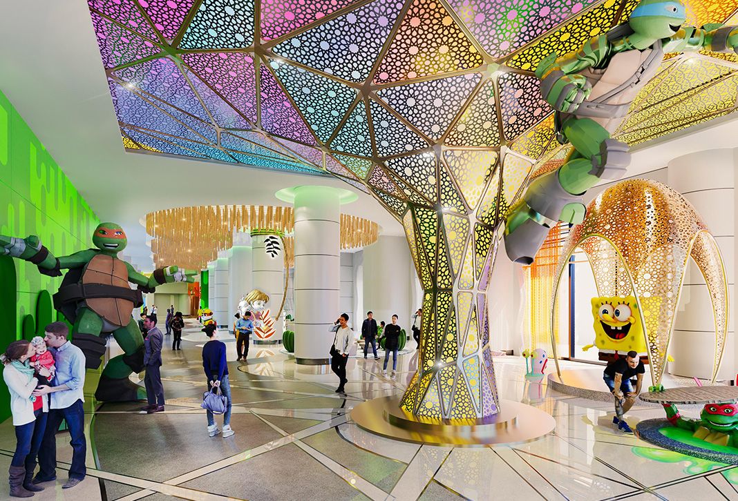 SpongeBob SquarePants, Dora, The Teenage Mutant Ninja Turtles, Star Trek™ и PAW Patrol теми във всеки детайл, 238 стаи с цветни концепции и специални дизайнерски апартаменти, Спа, частен фитнес център, турска баня, специално тематичен и атрактивен басейн, стилни точки за вкус и специално създаден за децата комфорт, забавление и спокойствие с Club Nick, развлекателният център предлага комбинация.