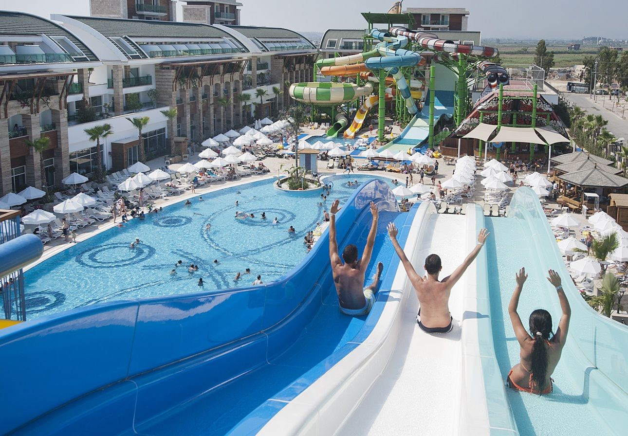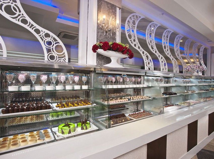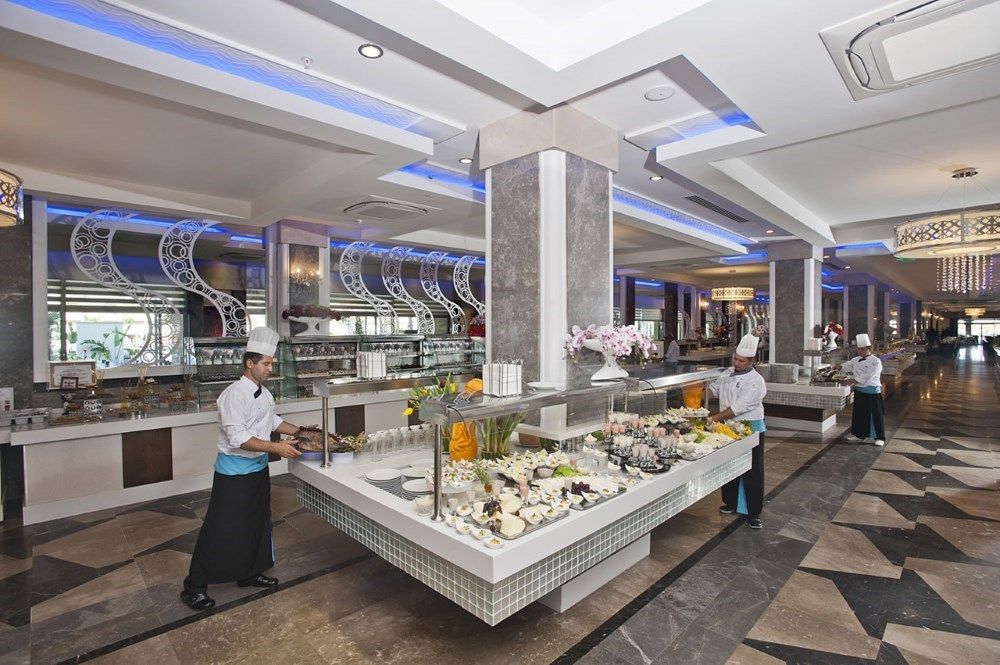 основен ресторант, диетично меню, вегетарианско меню, 5 ресторанта a-la-carte (турски, рибен, италиански, далекоизточен, южно-американски, с предварителна резервация, за целия престой едно безплатно посещение на един ресторант), 7 бара, 2 открити басейна, закрит басейн, 5 водни пързалки, лекарски кабинет, спа-център, фризьорски салон, търговска част, пералня, химическо чистене, конферентна зала (за 150 души)