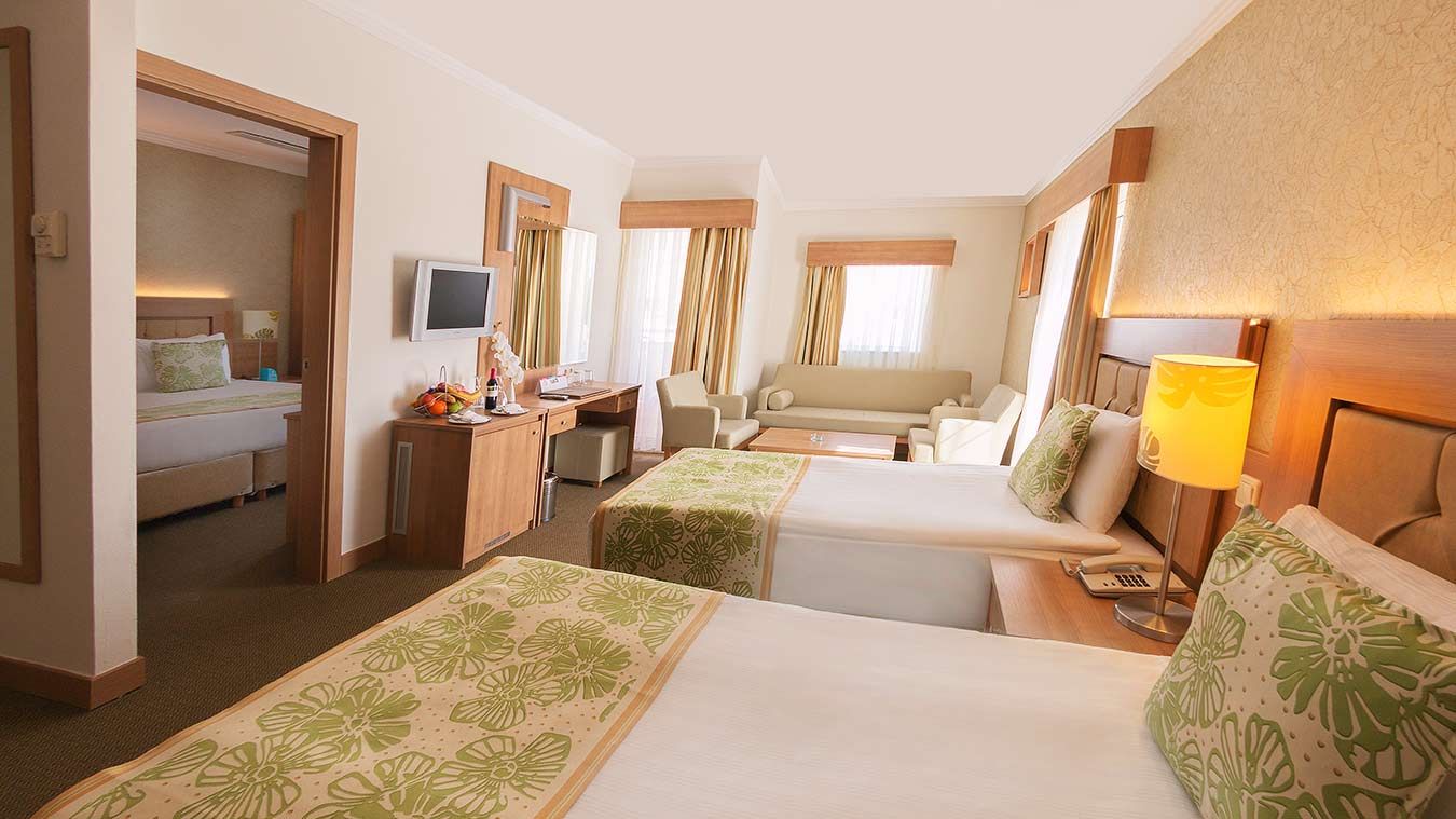- При настаняване на трима души в стая с три легла в стандартна стая третият човек ползва отстъпка от цената и бива настанен на допълнително легло. Трети възрастен или деца се настаняват на стандартно легло, само ако се заплати фамилна стая или апартамент.
