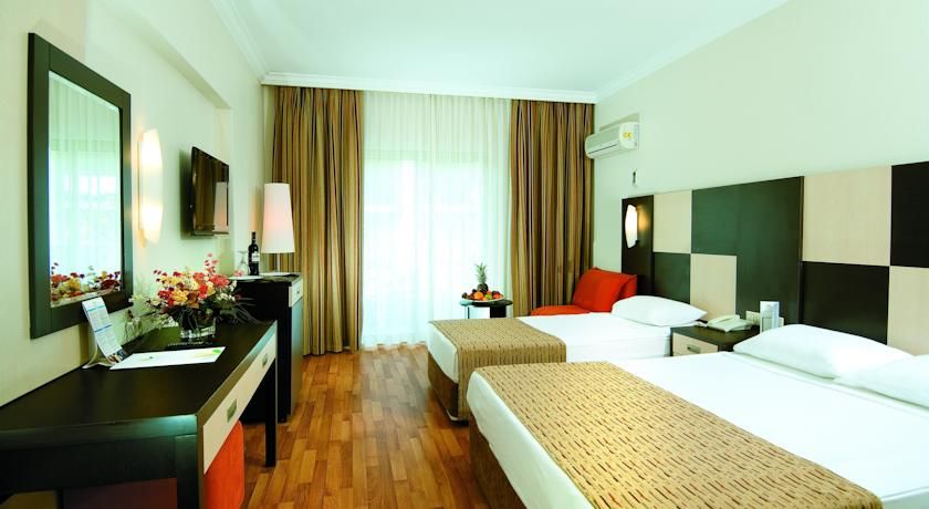 основен ресторант a la carte ресторат (турски и рибен – с предварителна резервация, 1 безплатно посещение за седмица, алкохолните напитки са срещу доп.заплащане). 4 бара 2 открити басейна закрит басейн 2 водни пързалки (за възрастни) библиотека лекарски кабинет фризьорски салон козметичен салон обмяна на валутаrent-a-car паркинг.За деца: детски басейн детска площадка мини-клуб (4-12 год.) детегледачка (платено)