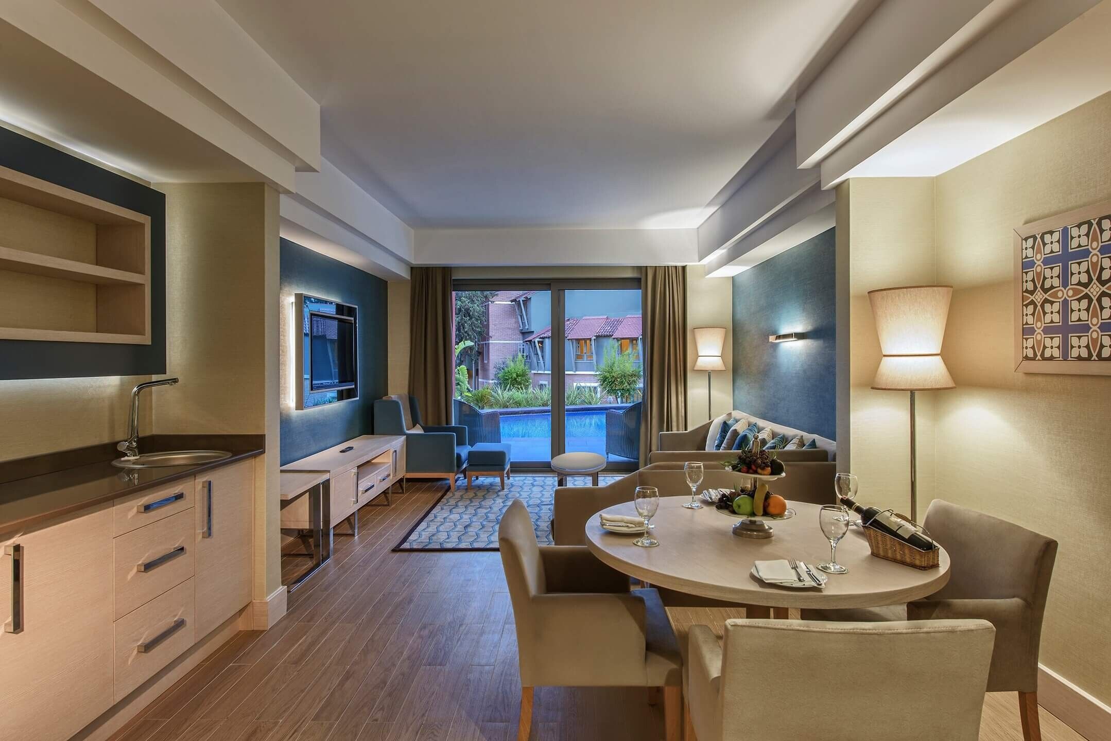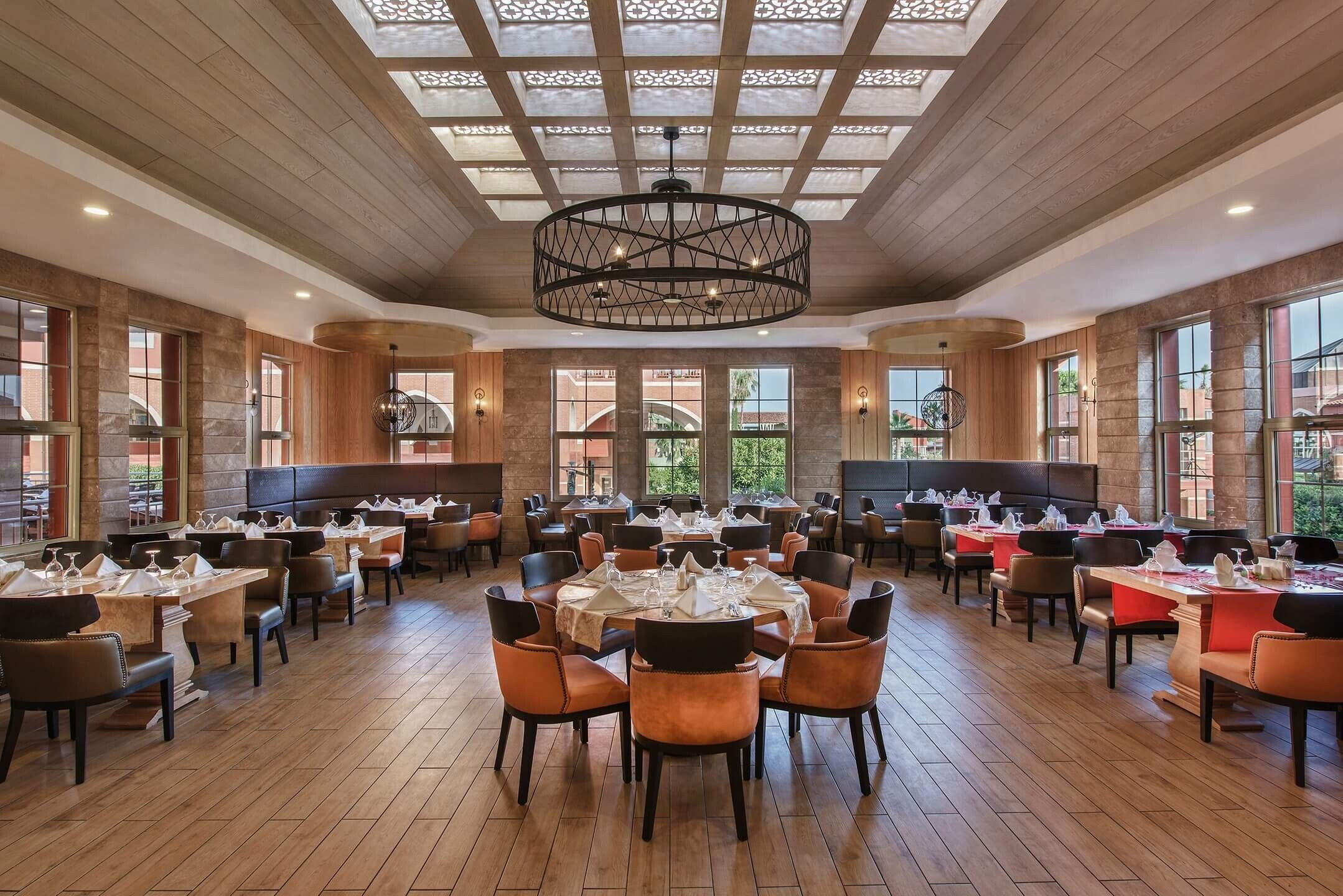 Основен ресторант, 6 ресторанта a-la-carte (китайски, мексикански, италиански, рибен, грил, османски - с предварителна резервация, за едноседмичен престой едно посещение на два ресторанта - безплатно ), 9 бара, 3 открити басейна, закрит басейн, 3 водни пързалки, лекарски кабинет, спа-център, фризьорски салон, търговска алея, пералня, химическо чистене, конферентна зала (за 350 души)