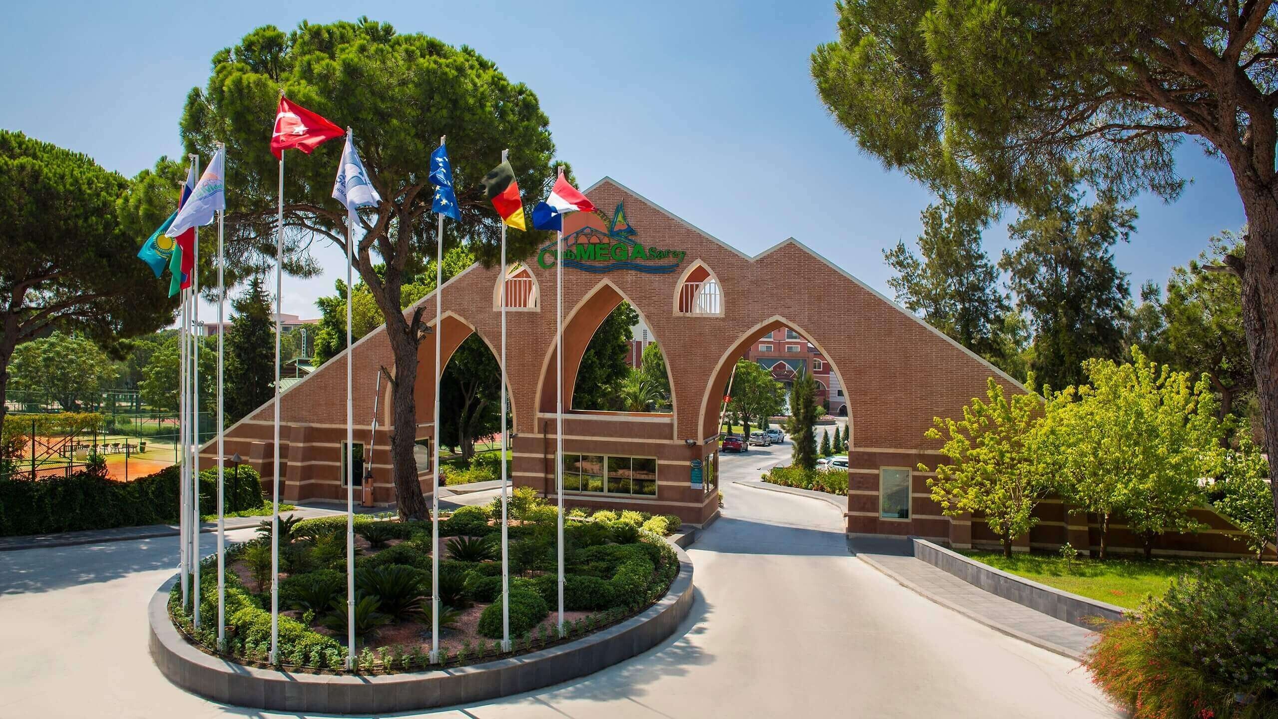 Club Mega Saray 5* е елегантен хотелски комплекс, заемащ обща площ от 121 680 кв.м. Намира се на 30 км от най-близкото международно летище в град Анталия, на 35 км от центъра на Анталия и на 7 км от селището Кадрие.