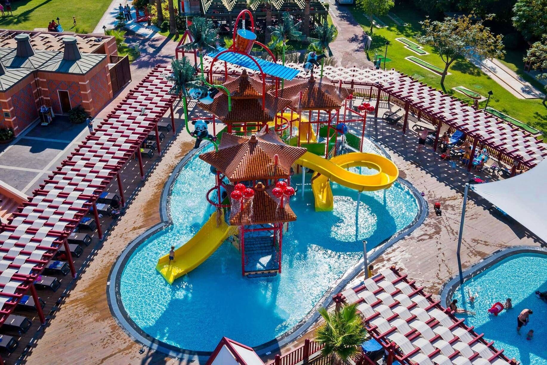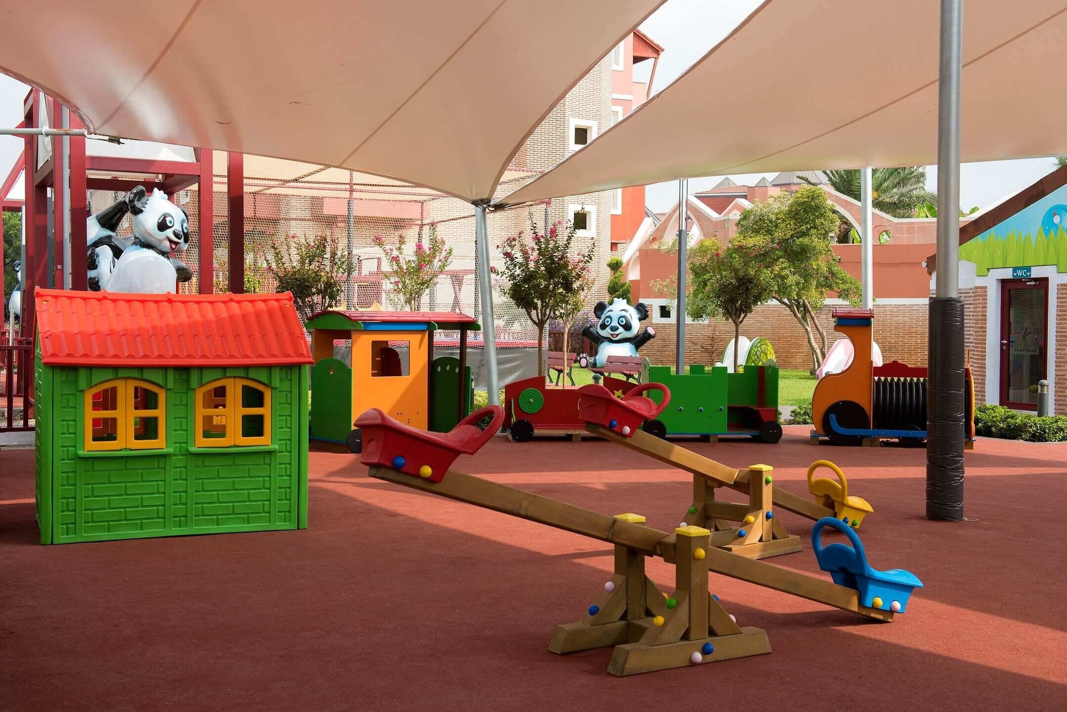детски бюфет (обяд и вечеря), детски басейн, 2 детски водни пързалки, детска площадка, мини-клуб (4-8 години), джуниър-клуб (9-14 години), детска количка (платено), детегледачка (платено)