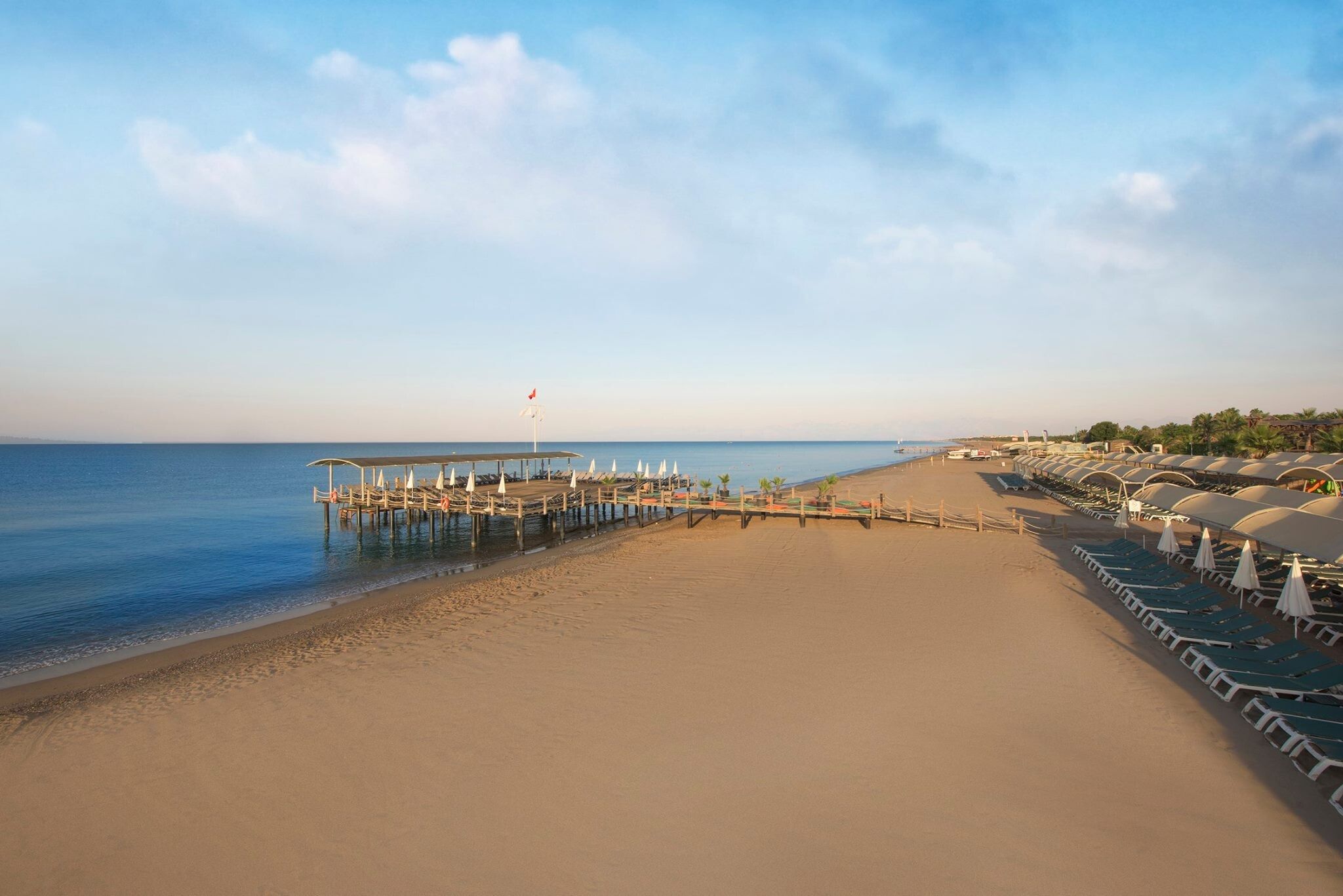 Хотелът разполага с 400 метрова собствена пясъчна ивица (фин пясък). Преходът в морето е плавен. Чадъри и шезлонги се ползват безплатно, а плажните кърпи – срещу депозит. Предлагат се и плажни шатри (срещу заплащане, с включено обслужване).