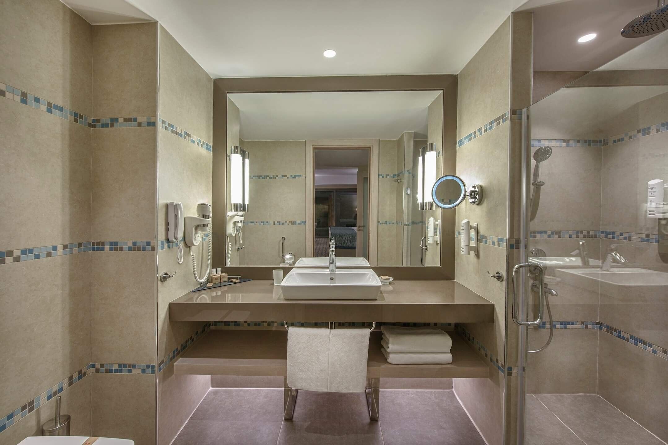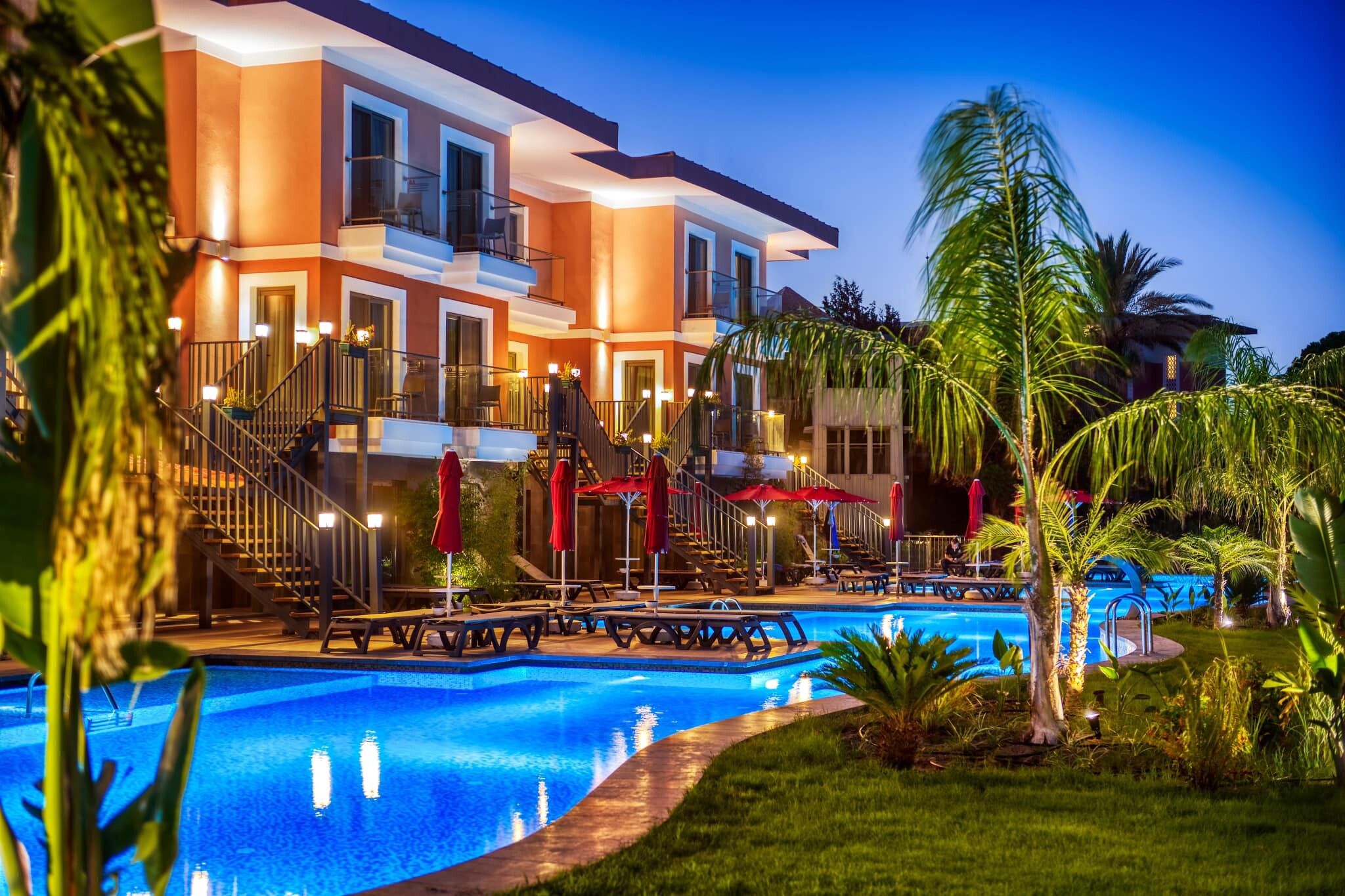Хотелът се състои от една 4-етажна основна сграда, пет 2 и 3-етажни клубни сгради и четири 5-етажни сгради делукс. Всички стаи разполагат с балкон/тераса, климатик, телевизор със сателитна телевизия, телефон, баня с душ, принадлежности за баня, сешоар, мини бар (зарежда се един път на ден с вода и безалкохолни напитки), сейф (безплатен). Почистване на стаите - всеки ден, смяна на спално бельо - 3 пъти седмично.