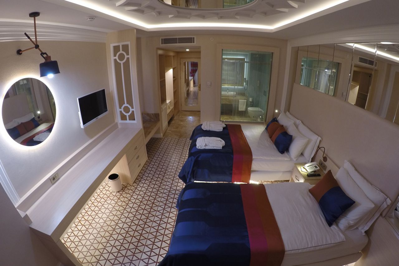 - При настаняване на трима души в стая с три легла в стандартна стая третият човек ползва отстъпка от цената и бива настанен на допълнително легло. Трети възрастен или деца се настаняват на стандартно легло, само ако се заплати фамилна стая или апартамент.
