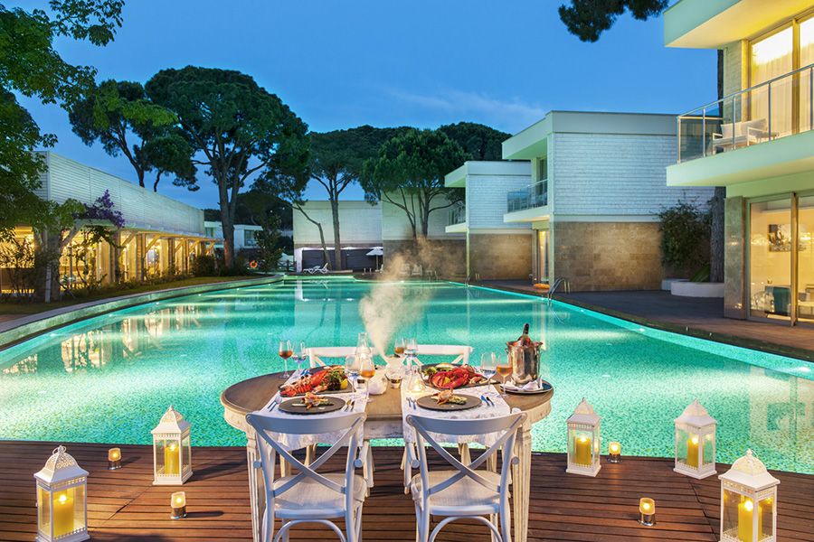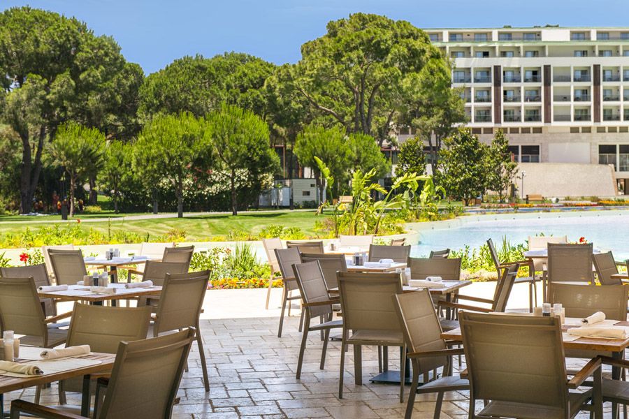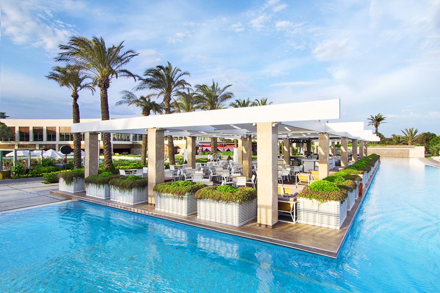 7 ресторанта a-la-carte (френски, турски, международен - с предварителна резервация - безплатно; италиански, рибен, азиатски, ливански - с предварителна резервация - срещу допълнително заплащане)