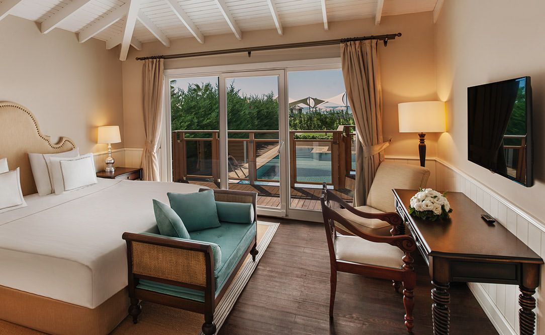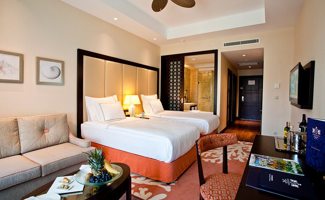 вана или душ, сешоар, халат и чехли, централен климатик, телевизор, телефон, мини-бар (безалкохолни напитки, бира, чипс, шоколад и мармалад - зареждат се ежедневно, безплатно), електрическа кана (набор за приготвяне на кафе/чай), козметика "Etro", сейф (безплатно), подова настилка - паркет, балкон или тераса, безжичен интернет - безплатно, почистване на стаята - ежедневно, смяна на спалното бельо - ежедневно, room service (24 часа, платено)