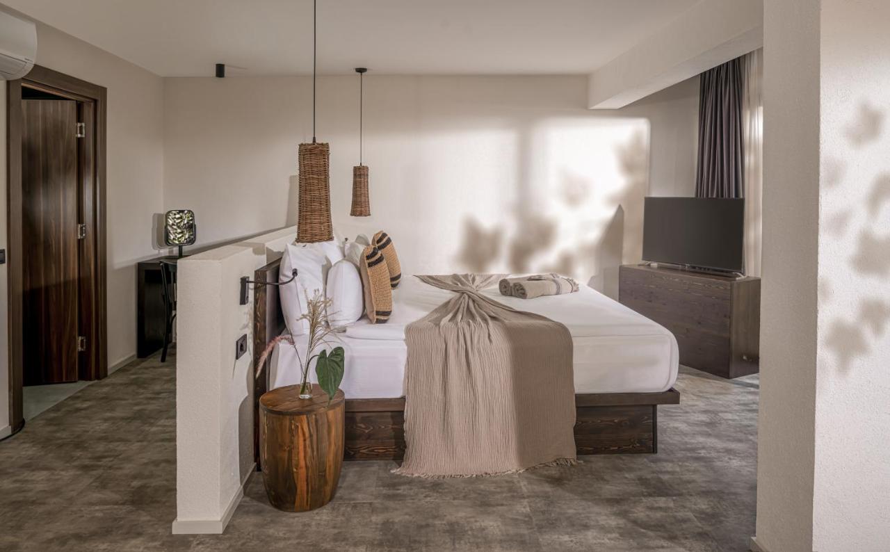 Собствен, чакълест плаж (препоръчително е носенето на аква обувки). Чадъри, шезлонги и плажни кърпи на плажа и при басейна – безплатно.