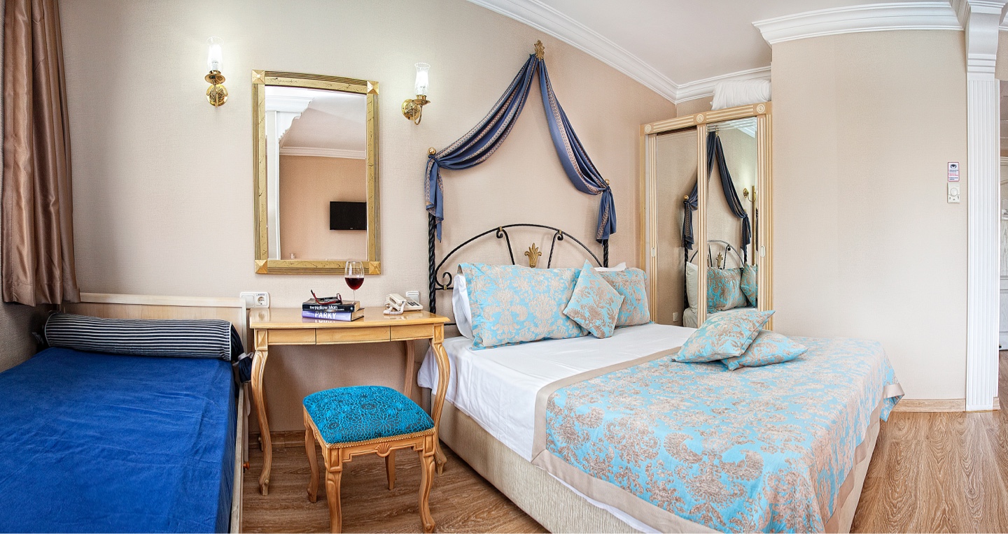 Хотелът разполага общо с 84 стаи от които 45 Standart Room Land View ( 26 кв. м.) , 39 Standart Room Pool View (26 кв.м) Всяка стая разполага с: климатик, телевизор, сейф, телефон ( срещу заплащане), мини бар, сет за чай и кафе. Стаите се почистват ежедневно. Смяна на бельо и кърпи 3 пъти седмично.
