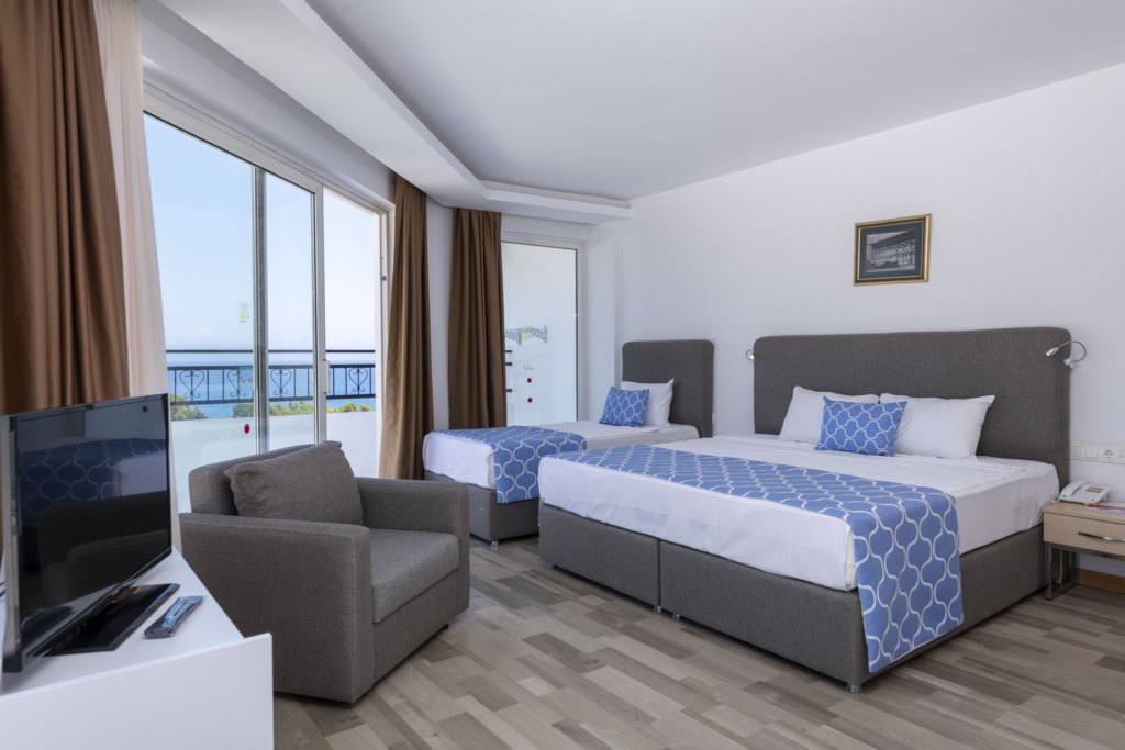 Стаи в основната сграда Main Building: Main Building Land View ( 20 – 23 м2), Main Building Sea View ( 20 – 23 m2), Main Building Superior Sea View (22 – 35 m2), Main Building Family Room (22-35 m2).