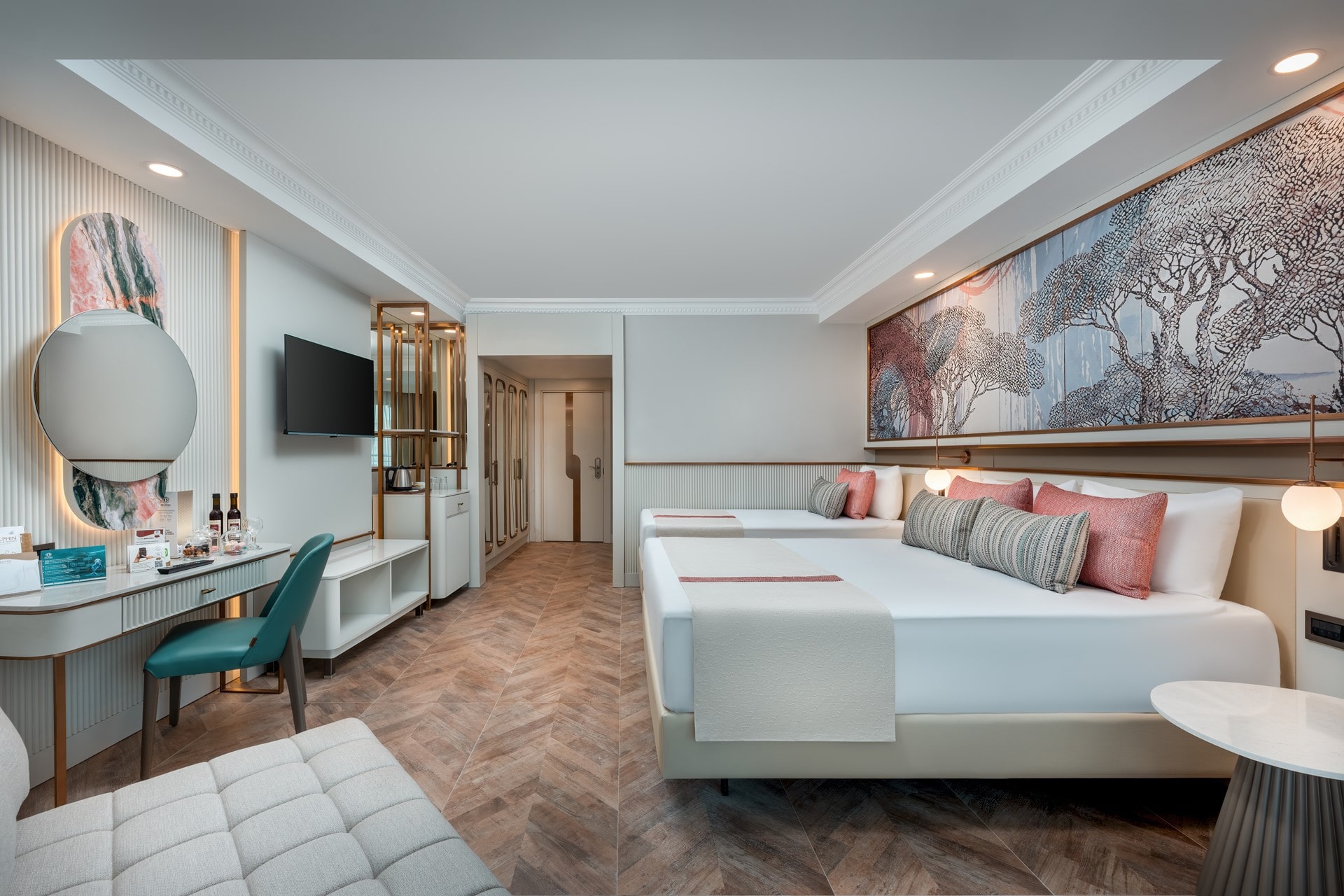 Хотелът разполага с общо 567 стаи. Всички стаи са оборудвани с: климатик, сателитна телевизия, телефон, сешоар, минибар, сейф.