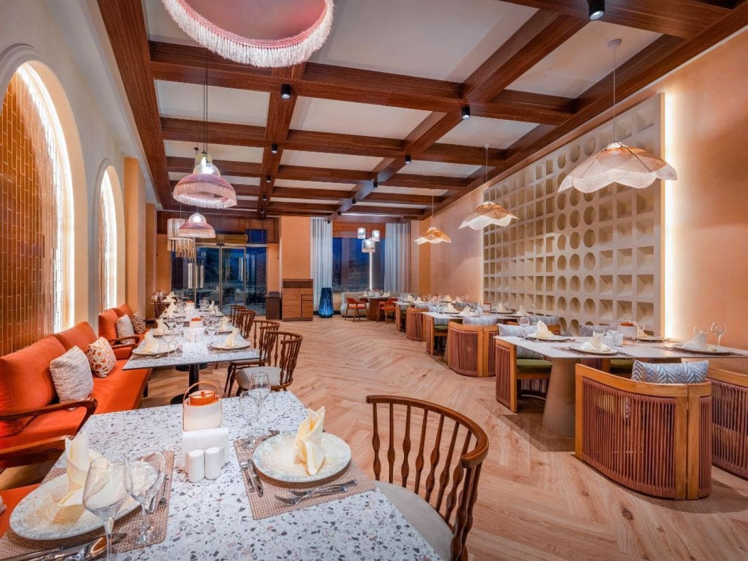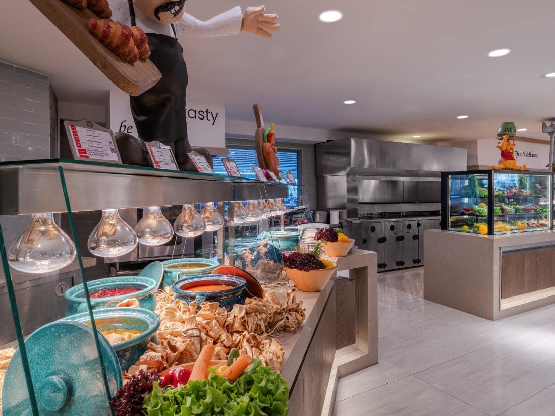 Основен ресторант, 7 а-ла-карт ресторанта (с предварителна резервация), 5 бара, 6 басейна, водни пързалки, магазини, СПА център, дискотека, 3 конферентни зали.