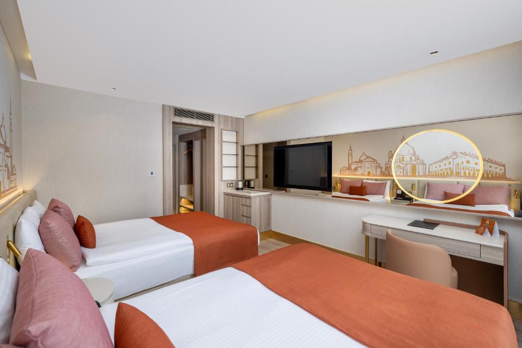 Всички стаи са оборудвани с климатик, телевизор, телефон, баня с душ/вана, сешоар, сет за чай/кафе, минибар (безплатен), сейф (безплатен).
